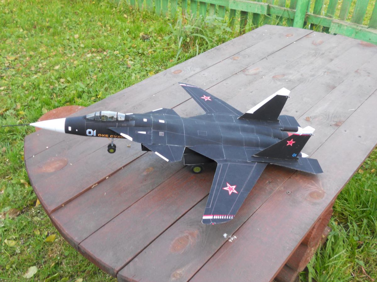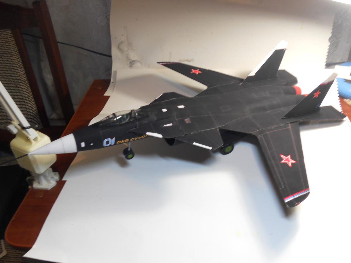 Привет всем ! на днях закончил вторую модель в авиации ПАК ФА Т-50-1 . Это самый первый лётный образец нового российского истребителя 5 поколения ( официальное название у него Су-57 ) . Этот самолёт совершил свой первый полет в 2010 году . Особенность этого образца в том , что он без камуфляжа , так что можно увидеть на макете использование композитов в конструкции ( это все серые части ) . Жёлтые детали - это покрытые шпатлевкой металлические части . Макет собирал с начала августа , по моим подсчетам на него ушло около 80 часов работы . Сама разработка выгодно отличается тем , что сделана "для людей" . Каркас продуман отлично , везде есть риски и метки для деталей . Обшивка вся " лоскутками " , что на самом деле довольно сложно в склейке , но передает более точно геометрию корпуса . Есть конечно и спорные моменты , кое где сходимость посредственная ( отчасти из-за сложности каркаса ) , но в целом мне понравилась разработка . Издательство Orlik , оригинал журнала Масштаб 1:33http://cdn-frm-eu.wargaming.net/wot/ru/uploads/monthly_08_2017/post-37117849-0-97912800-1504015808_thumb.jpghttp://cdn-frm-eu.wargaming.net/wot/ru/uploads/monthly_08_2017/post-37117849-0-07868500-1504015854_thumb.jpghttp://cdn-frm-eu.wargaming.net/wot/ru/uploads/monthly_08_2017/post-37117849-0-81025400-1504015904_thumb.jpghttp://cdn-frm-eu.wargaming.net/wot/ru/uploads/monthly_08_2017/post-37117849-0-65286300-1504015963_thumb.jpghttp://cdn-frm-eu.wargaming.net/wot/ru/uploads/monthly_08_2017/post-37117849-0-25464200-1504016071_thumb.jpghttp://cdn-frm-eu.wargaming.net/wot/ru/uploads/monthly_08_2017/post-37117849-0-63506100-1504016015_thumb.jpghttp://cdn-frm-eu.wargaming.net/wot/ru/uploads/monthly_08_2017/post-37117849-0-78276500-1504016120_thumb.jpghttp://cdn-frm-eu.wargaming.net/wot/ru/uploads/monthly_08_2017/post-37117849-0-70925500-1504016283_thumb.jpghttp://cdn-frm-eu.wargaming.net/wot/ru/uploads/monthly_08_2017/post-37117849-0-40046700-1504016169_thumb.jpghttp://cdn-frm-eu.wargaming.net/wot/ru/uploads/monthly_08_2017/post-37117849-0-53235500-1504016223_thumb.jpghttp://cdn-frm-eu.wargaming.net/wot/ru/uploads/monthly_08_2017/post-37117849-0-33322600-1504016327_thumb.jpg