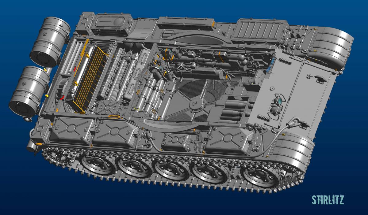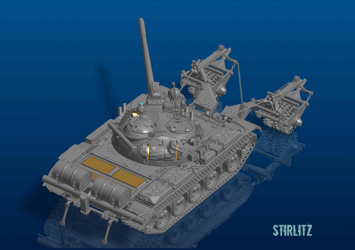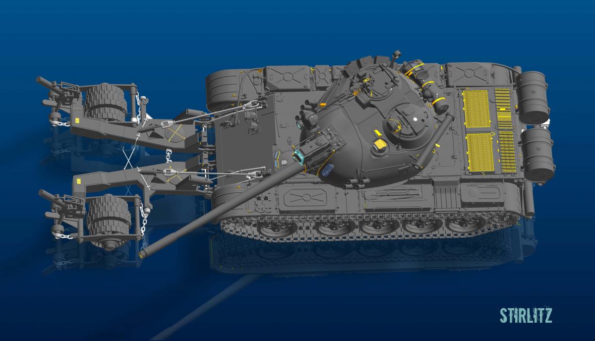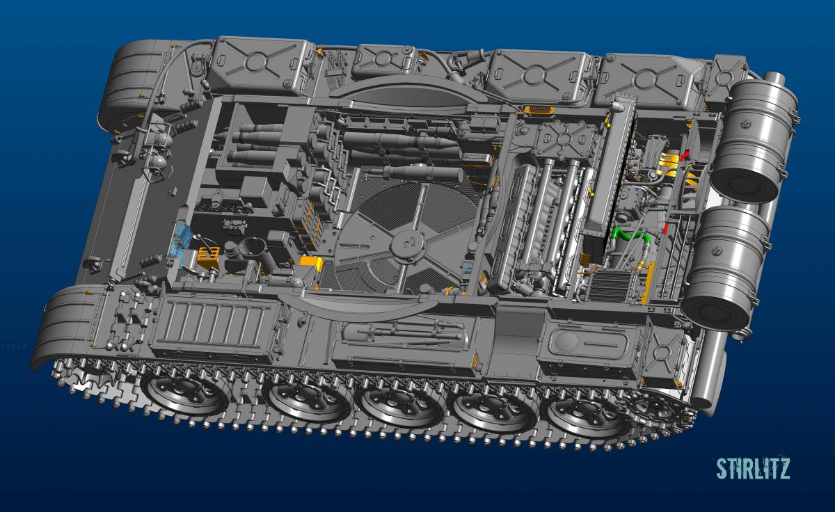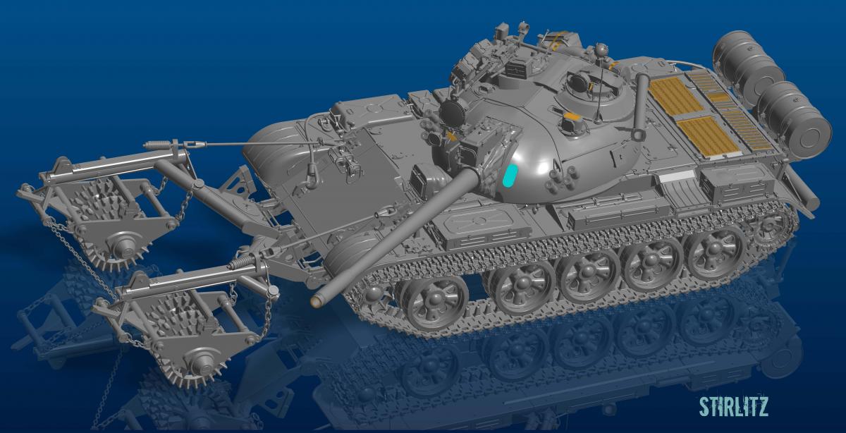 Хочу разбавить темы с собранными моделями - моделью с которой начинается собственно моделизм. 3D модель танка Т-55А с полным интерьером. Создана в программе Creo Parametric для одной из модельных фирм и сейчас выпускается. На всякий случай уточняю - работа моя. Помимо общих видов - отдельно показана башня, начинка башни, орудие. И показан танк со снятыми верхними листами. В качестве "3D стилей" на танк установлены минные тралы КМТ-5 и поздний вариант КМТ-7 с электромагнитным тралом. Гусеница с наборными траками. Модель не "крашу" в программе - поскольку от пестроты устают глаза. Детали из прозрачного пластика - голубого цвета, фототравление - цвета латуни. По времени эта работа заняла 3 месяца.