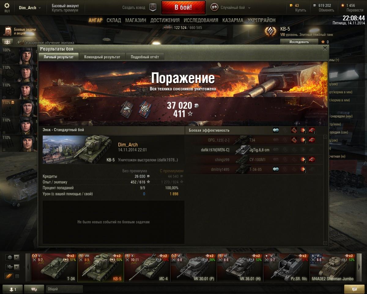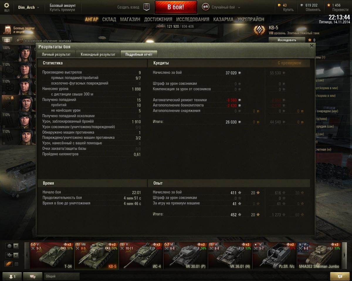 Разуй глаза, в моем предыдущем сообщении прикреплено 3 скрина и видос. Ты слепой? Ты тут копытом в грудь бьешь, что меньше 20к за бой привезти невозможно при самом плохом раскладе, разочарую, вот тебе чистой прибыли 9000 серебра при том, что я нанес 572 дамага. Или ты и этот скрин не видишь? Тогда одень очки. Но специально для слепых прикрепляю еще раз. Первые три скрина бой с одноклассниками - 37000 серебра "грязными". На 4-м скрине - 9000 серебра чистыми при 572 дамага нанесенных противнику. Вопросы есть? "Как было" показано на видео ниже. И кстати мы тут обсуждаем КВ-5, а не ягдтигр 8.8, который ты пытаешься впихнуть вместе с "китайцем".