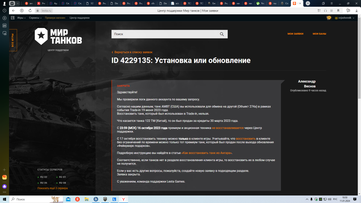 Прювет танкистам хочу вам написать новую весть как леста воруем прем танки 2021 году я себе купил новогоднии коробочки и достал от туда прем танки 4 шт. 1 танком был ех потом 122тм потом был калибан потом су 122 тм . дальше те танки которые мне непонравились я продал я которые оставил . Так обьесните мне после обновы я захотел выкупить прем танк 122тм недавно так как было серебро захожу на склад выкупить танк ьа там фигу вам а не 122 тм значит еха я могу выкупить бесрочно с калибаном а 122тм леста уперла написал в супорт мне дали пипец какой ответ. мол я его продал за серебро а вернуть уже все так как так ех и калибан бесрочно стоят могу вернут а 122тм нет а веть они были достаты с новогодних короб .Веть леста писала танки за реал некогда не пропадат с ангара их можно будет вернут и как тут жить Копирую что мне написали на суппорт так как жить так я знаю людей у которых ьпроста нужны были кредиты и они продали бз и он тутже пропал из склады воры 1 словом кто успеет прочитать пока леста не удалила репост тот успеет если нет то нет но когда я писал этот тег я записывал видео и расказывал .Удалят тег выкину видео на рутют и на ютуб про воров в танках