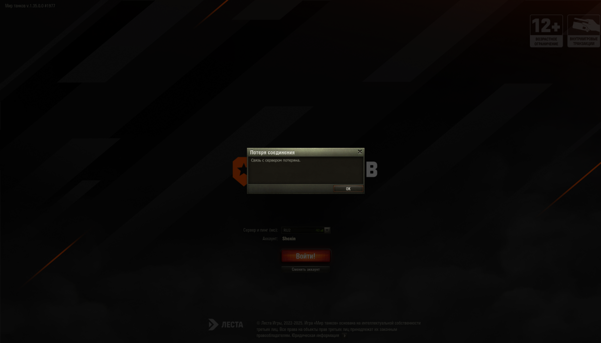 8. Со вчерашнего дня при запуске игры сначала лаунчер не отвечает,потом пишет потеряна связь с сервером,тоже самое происходит после боя(но не каждый раз).Так же бесконечно грузит магазин и кланы(иногда также лаунчер не отвечает и выкидывает с сервера,иногда просто бесконечная прогрузка).Тп пока не отвечает уже сутки,а информацию в интернете не смог найти свежую по этой проблеме.https://forum-mt-prod.lesta.ru/monthly_06_2025/post-37743423-0-54279000-1750522914_thumb.pnghttps://forum-mt-prod.lesta.ru/monthly_06_2025/post-37743423-0-88173800-1750522920_thumb.pnghttps://forum-mt-prod.lesta.ru/monthly_06_2025/post-37743423-0-86015100-1750522926_thumb.pnghttps://forum-mt-prod.lesta.ru/monthly_06_2025/post-37743423-0-52300800-1750522952_thumb.png