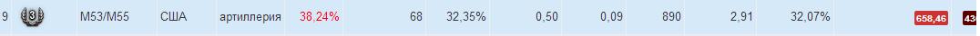Немного добавлю про стоковый вариант M53/M55 после обновления 9.6. Максимальный урон в стоке 590 хп. Остальное - из разряда фантастики. Среднее значение 400-550 хп. Нижнее относится к бронированным машинам, высшее к машинам с открытой рубкой и без брони типа St. Emil. Это арта IX уровня, на секундочку. Разброс после обновления впечатляющий. Попадает 1/5. На неголдовом снаряде нет сплэша. Средний результат при поражении - 150-200 опыта (без према). Качайте на здоровье! Арта доставляет возможностью пролета снаряда под танком, под башней, между двумя стоящими борт в борт (стоковый ствол)! Это, кончено, фан! Команда постоянно стонет, что арта им не помогает. При этом ты накрыл 4-6 машин противника, но большинству из них нанес всего 40-100 урона. При 100% сведения по стоячим. По двигающимся лучше и не пытаться стрелять это как пальцем в небо. Уверен, с топовым стволом станет и легче, и лучше, и ВБР изменит полярность. Но до него без свободного, как до Китая на четвереньках. На настоящий момент в моём гараже эта арта худшая из всей ветки США по статистике. Включая низкоуровневые. http://cdn-frm-eu.wargaming.net/wot/ru/uploads/monthly_02_2015/post-3830397-0-70925400-1424509706_thumb.jpg