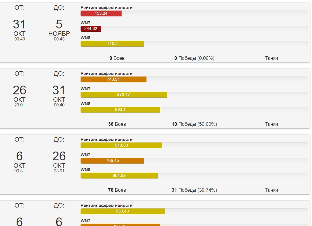 Ага, расскажите, что в игре нужны несгибаемые прямые руки, светлая голова, тактика, знание карт и слабых мест противника! И вот с этим вот всем этим вы будете выигрывать даже не подключая специальные моды, которые типа запрещены, но не всем! Игра - казино. Рандом зависит от ВБР чуть более, чем полностью. Попали в светлую полосу - опа, "я батя". Попали в черную полосу, все вокруг козлы и криворукие уроды! Хахахах! P.S. Кстати, года три назад таких качелей не было, ВБР карал и награждал намного аккуратнее. http://cdn-frm-eu.wargaming.net/wot/ru/uploads/monthly_11_2016/post-3830397-0-07693900-1478322059_thumb.jpg Второй аккаунт, который попал в сортирную полосу, где сливы происходят за 2 минуты. Выбраться из ямы не удаётся. Все началось с очередным обновлением. http://cdn-frm-eu.wargaming.net/wot/ru/uploads/monthly_11_2016/post-3830397-0-82260700-1478322435_thumb.jpg P.S. Испытывая неимоверную радость из-за происходящего, решил ограничить донат в игре в соответствии со статистикой второго аккаунта! Т.е. до нуля!