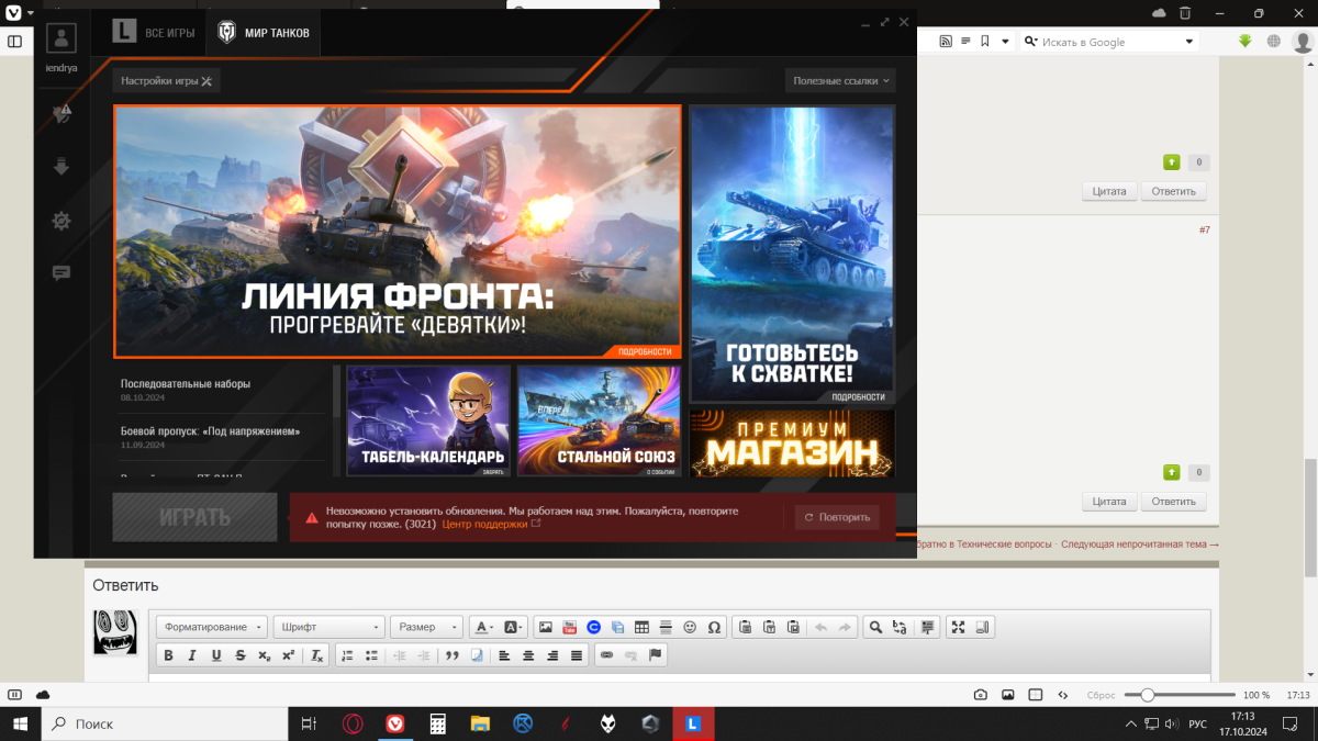 Я сделал это. Вырубил обход блока ютуба, потушил всё, перезагрузил и обнова установилась. А мож это совпадение https://forum-mt-prod.lesta.ru/emoticons/Smile_crab.gif