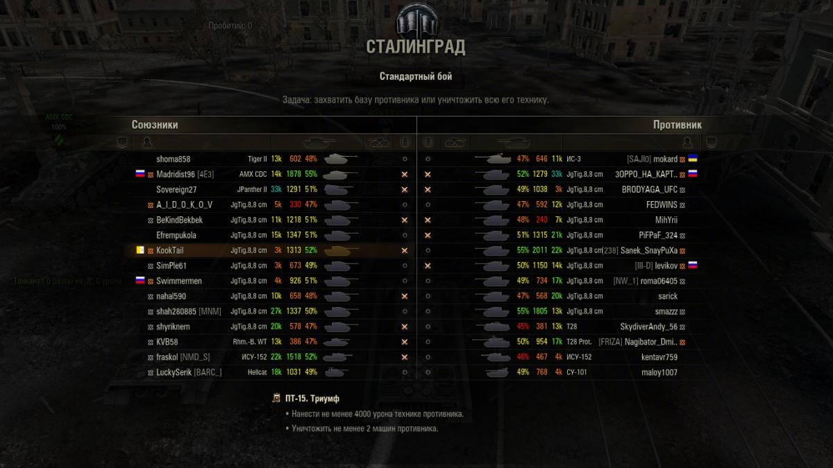 Не могу не согласится со всеми выше отписавшимися. Покатал на этом танке и по фану он намного превосходит всех одноклассников - т-54, е50. Может и дамажить, и отбивать снаряды и таранить))). Вот пример боя, где в моей тиме всего два "статиста". Бой затащен. В конце боя дуэль с т-54. Кстати заметил, что стрелять на этом танке на ходу получается точнее, чем стрелять при полном сведении. Видимо фишка такая)) http://wotreplays.ru/site/6292385#vinterberg-kooktail-wz-120 Пользуясь случаем, хочу поблагодарить всех Алешек, за то, что не играют на этом танке, а значит не портят его статистику в рандоме.