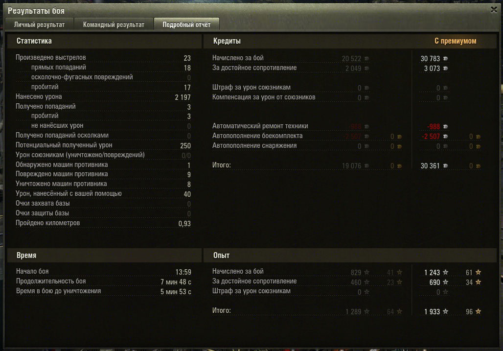МС-1 просто замечательный танк, хотя после обновления с меткостью стали немного нелады. А медальки зажимают. В первом бою повредил 13, подбил 5, один выжил. Ничего не дали. Пришлось в следующем всех 11 поврежденных добивать до конца. Получил своего "воина" и 1785 опыта (с прем.)