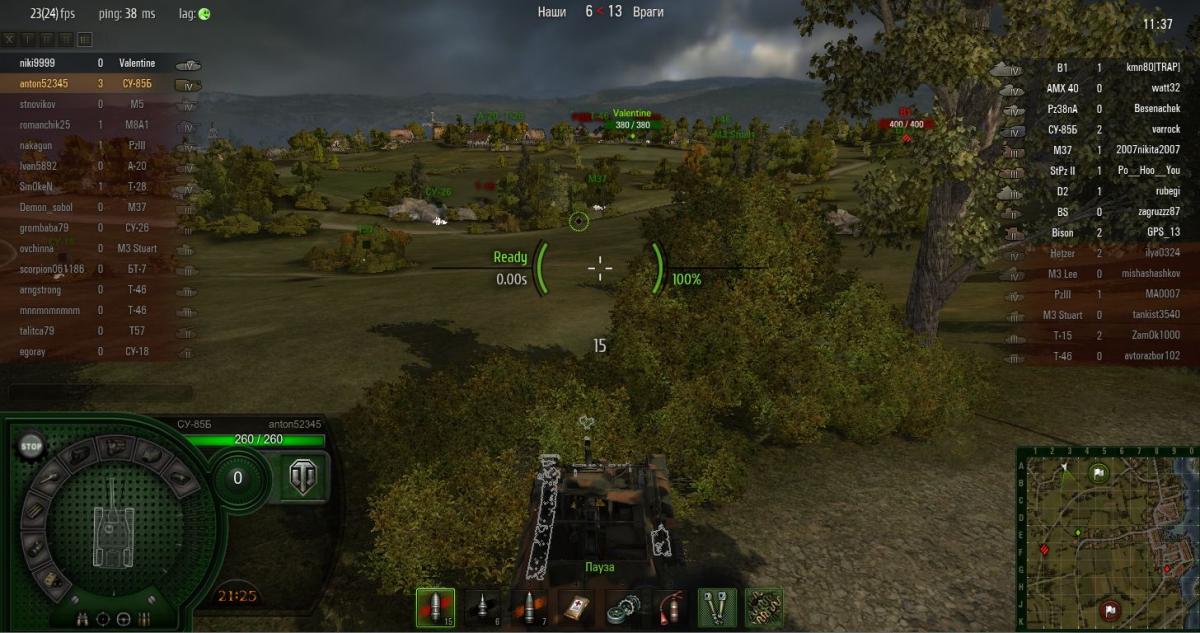 Машинка замечательная. Если сразу хорошо займёт позицию и не погибает от арты (а она почему-то очень на бяшку злая), то очень неплохо может попортить кровь врагам. И не особо важно в топе или нет. В атаку ходить на ней конечно не стоит, хотя в качестве пассивного света может себя очень неплохо показать. Ползешь от кустика к кустику, а за тобой пара монстров... С ЛБ-2С она пробивает практически всех к кому её заносит. ЗИС-2 тоже неплохое орудие, но урон от него слабоват и в бою с сильным противником это часто стоит жизни.Сегодня остался с Валентайном против 9 противников, они рано уверовали в победу. Им не повезло.
