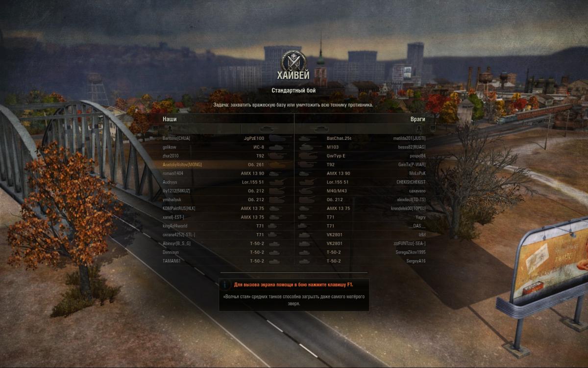 Только что закончился бой. Где арта 8лвл почти в топе и полно света. Я понимаю , что таких публикаций много (возможно) , но я просто хочу поделится своими (как бы это сказать?) * В общем просто взгляните на скрин. http://cdn-frm-eu.wargaming.net/wot/ru/uploads/monthly_02_2013/post-3802683-0-55018700-1360662384_thumb.jpg Да и еще вот реплей http://wotreplays.ru...ltov-ob_ekt_261