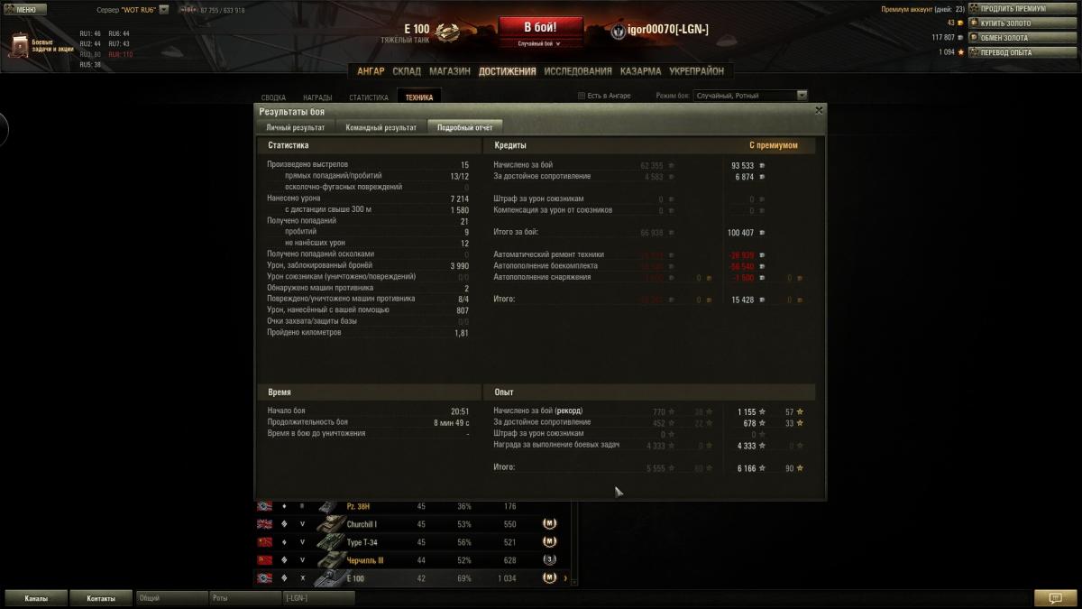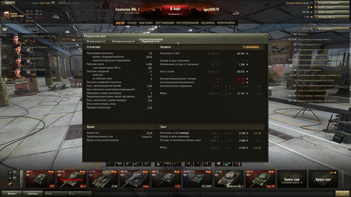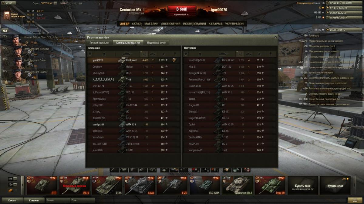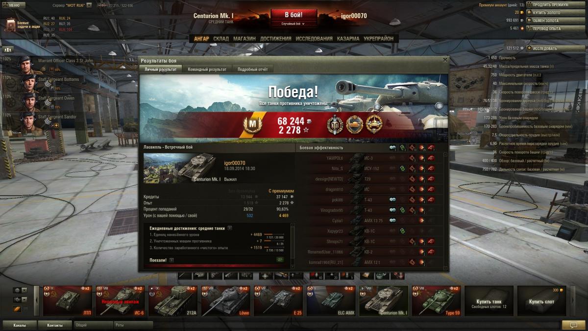 Блин, мастера взять тупо нереально... Да и ну его нафиг. Танчик прошел за 60 боев (остальные были сделаны год назад, и то даже в топ не вывел) без х2 и прочей фигни. Только сегодня х5 на 10к снял) Вообще танчик понравился, хотя и матюкался иногда на него. Даже в ангаре бы оставил, если бы экипаж лишний был. Ну пойду скоро страдать на стоковом центурионе... Исследовано: Centurion Mk. I исследован. Потрачено нераспределённого опыта 100000, свободного опыта 0.