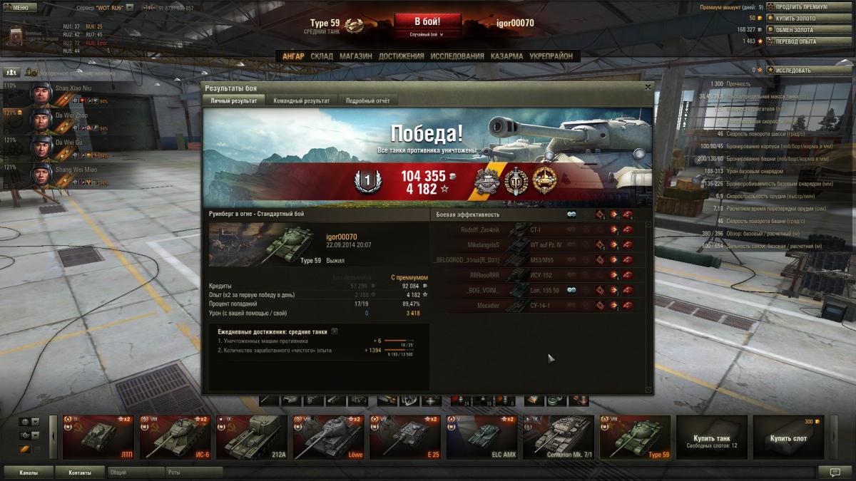 Затащил против 2 пт и арты атаковавших одновременно. Грамотное использование брони против фугасов (типо сарказм), веселые покатушки без мехвода, отдача союзной яжки на растерзание арты и добрая лорка, оставившая арту мне на воина) http://wotreplays.ru/site/3569777#ruinberg_v_ogne-igor00070-type_59