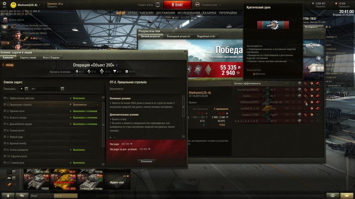 Не могу понять может кто поможет. Делал лбз пт-2 на об 260 Нанести не менее 5000 урона и вывести из строя 3 внутренних модуля или члена экипажа машины противника Выжить в бою.Не иметь к моменту завершения боя повреждённых или выведенных из строя внутренних модулей или раненых членов экипажа. урон сделал, в конце боя была покоцана гусля-я ее починил. выбил БК,мехвода,командира и дигло у врагов. ЧТо не так то?