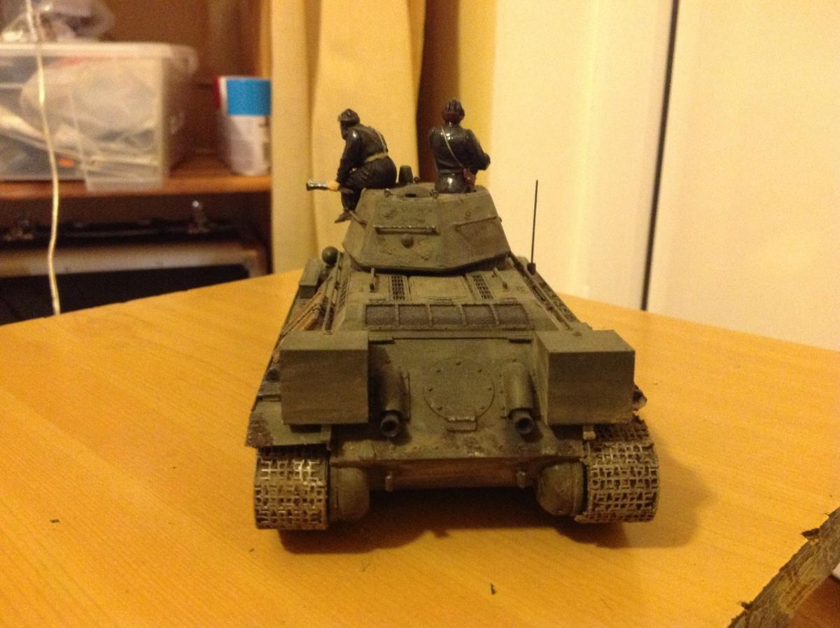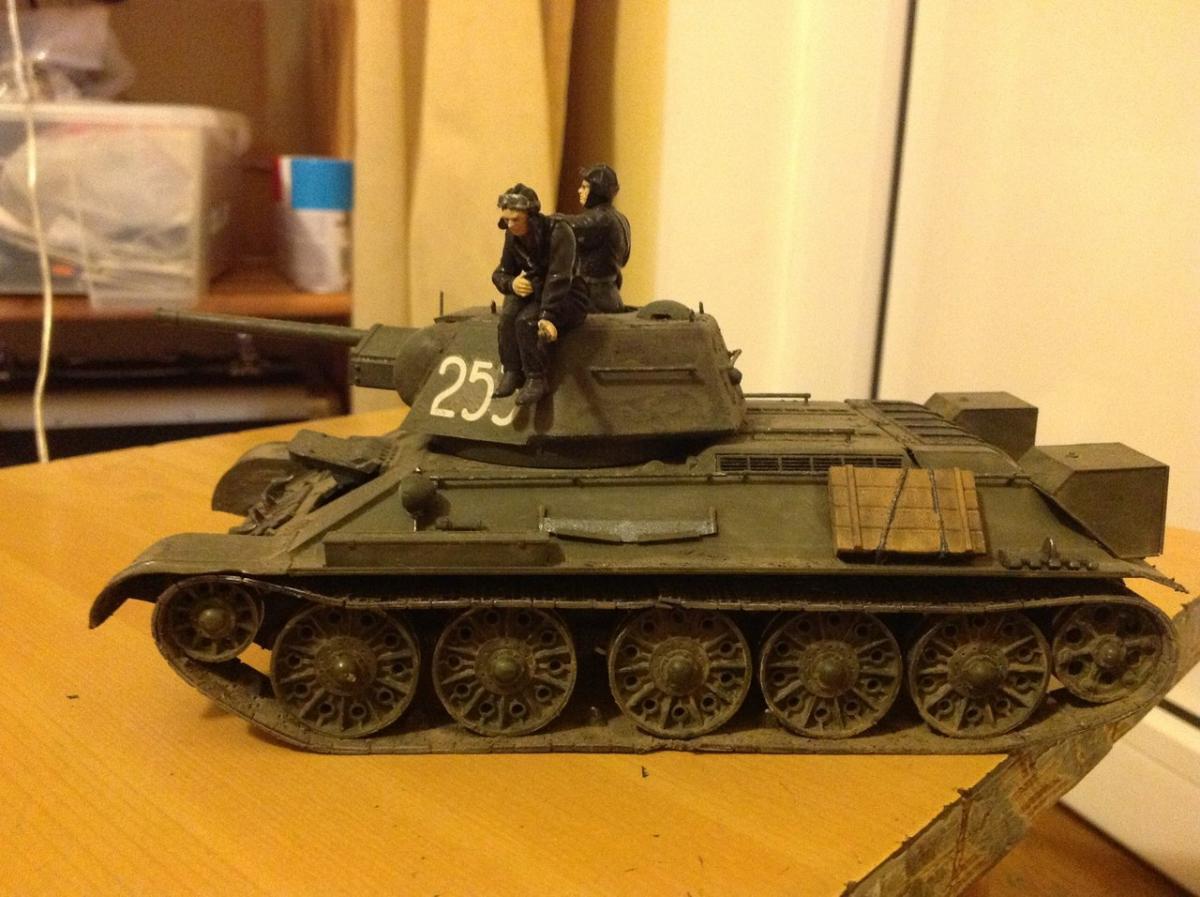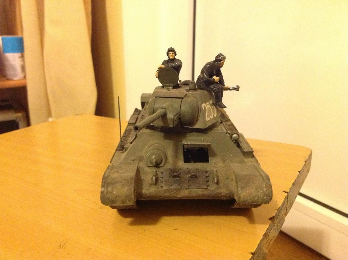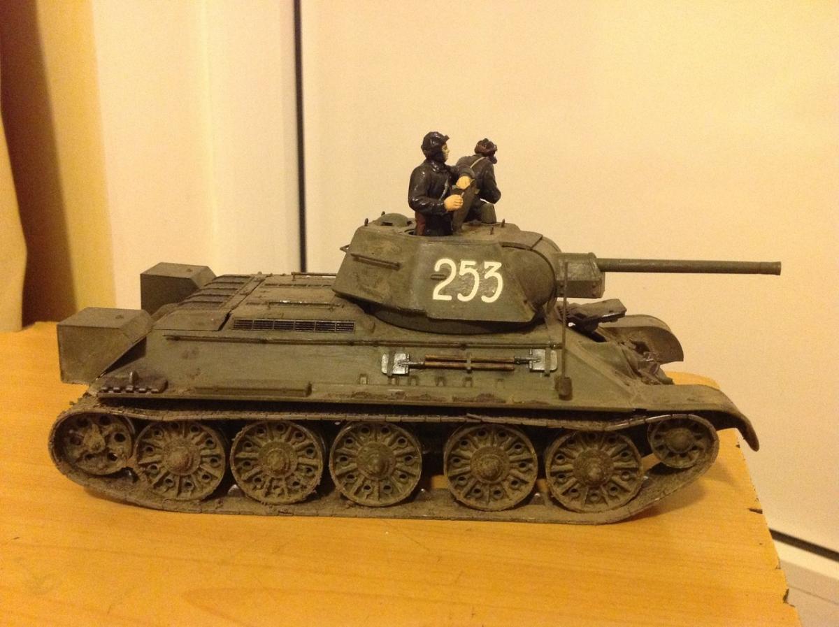Всем привет. Еще прошлым летом купил Т-34/76 от Звезды и благополучно забыл про него ввиду обстоятельств. В этом году нашел его тщательно спрятанным в тумбочке и решил все же собрать его. Простую 34 я уже когда-то клеил, но получилась она совсем не очень, ибо я был совсем мал и собирал абы как. Сейчас ума вроде как прибавилось и решил я сделать ее же, только уже закаленным в боях. Но когда собрал его, то понял. что чего-то не хватало, решил добавить экипаж ( тоже от Звезды). Человечков крашу первый раз так что за черные глаза строго не судите . Ну и вот что получилось.