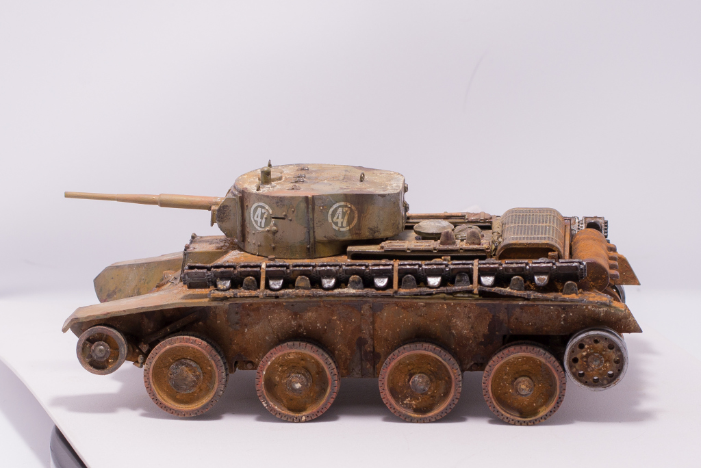 http://cdn-frm-eu.wargaming.net/4.5/style_images/wg/snapback.pngKirov_276 (29 июл 2019 - 14:11) писал: Сколько красок и пигментов. Прям как Джеймс Бонд:" перемешать но не взбалтывать". А смысл всей этой мешанины? Да еще и без подставки под местность? Логически не вяжется увазюканый в овно танк с снятыми гусеницами. Гусеницы на бт-5 (см. Барятинского) предполагалось снимать при движении по Европейским автобанам . Тем более что рыжая ржавчина не появлялась абы как. Я понимаю ,если бы был подбитый и простоявший и ржавеющий. Но,судя по фото - действующий. Как минимум в "Кэмел трофи". Хименес прямо говорит- в моделизме прежде всего важна логика . Т.е. представлять что с машиной было бы в живую. Сори, но или доделывай подставку и отрывай косячно звездовский каток , или делай как диораму. Все это можно было сделать одной тамией с прешейдингом и зиповскими фильтрами. Спасибо за комментарий "Уважаемый" "Эксперт"...