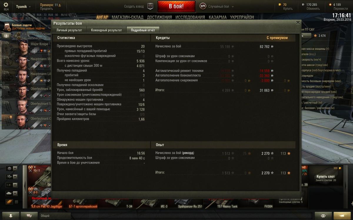 120 боев, пп-57 пока. Аппарат очень нравится. Наверное потому что до него откатал более 2000 боев на яг88 ))) И , наверное, потому что пересадил на него 5 перковый экипаж)))