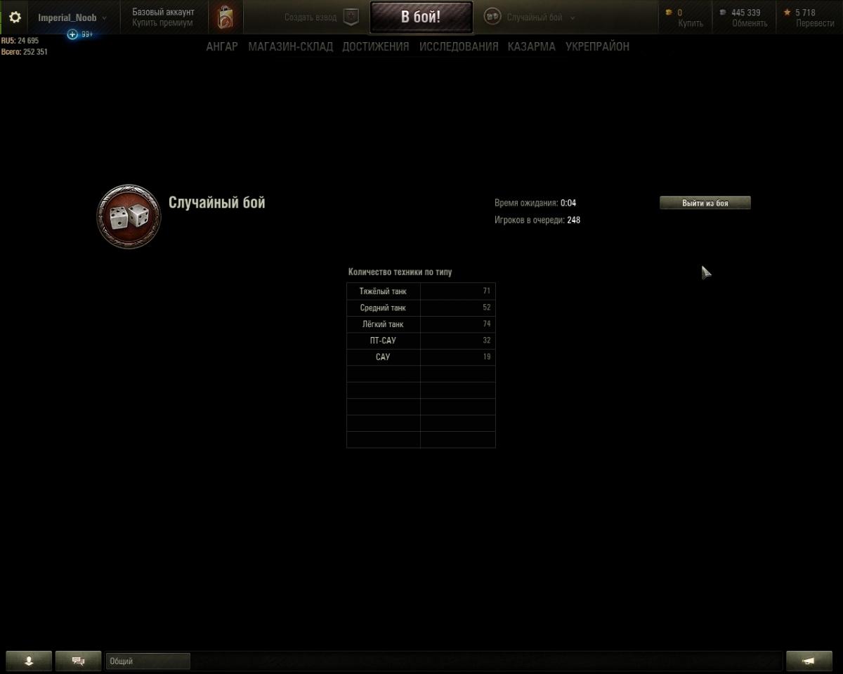 Сегодня, после обновления клиента, я не могу зайти ни в один бой. Нажимаю "В бой" - всё нормально: идёт время ожидания, изменяется состав очереди, но когда бой найден, то таймер замирает (смотрите пикчу) и всё, так всё и замирает. Однако, мышь двигается, также работает кнопка меню, могу менять настройки и выйти из игры. Так же могу отключиться от сервера, но обратно на сервер уже не пускает, на другой тоже ибо "Сессия не закончена". Попробовал зайти в обучение. Результат: стою в очереди на обучение, появилась на характерная музыка входа в бой и всё, нажимаю отменить - прошу посмотреть на второй скрин.