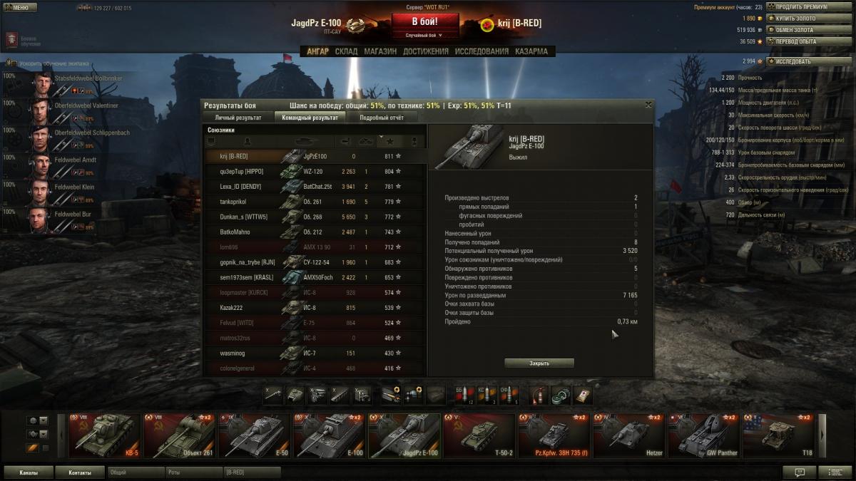 http://wotreplays.ru...e/888609#report Представляю вашему вниманию быстрый нагиб олёшек в рандоме! Ничего особенного, просто средний бой на п2. Попадались бы такие команды каждый бой))