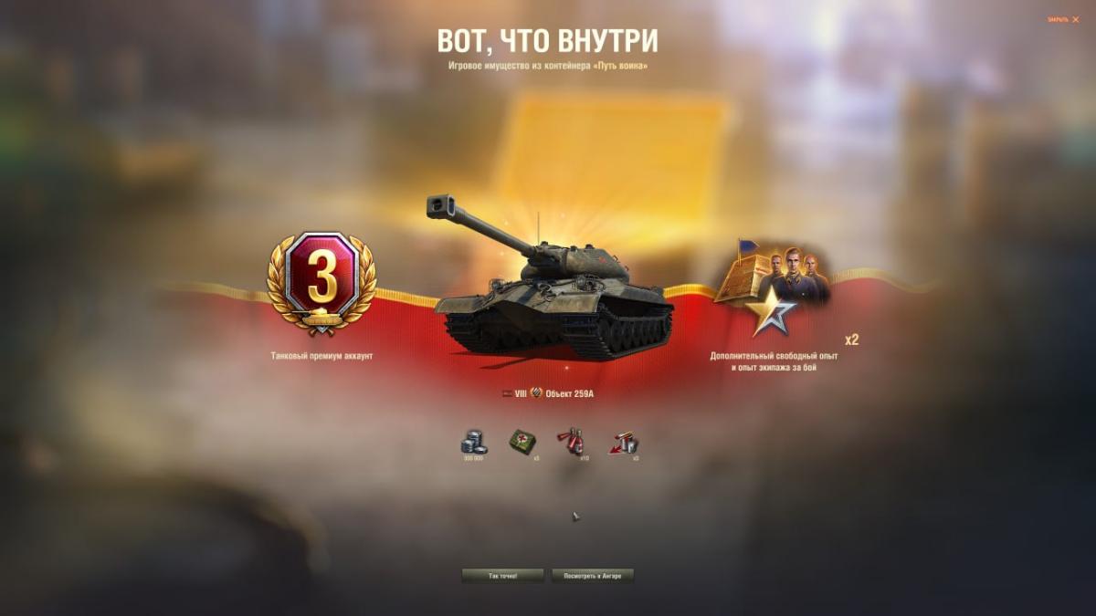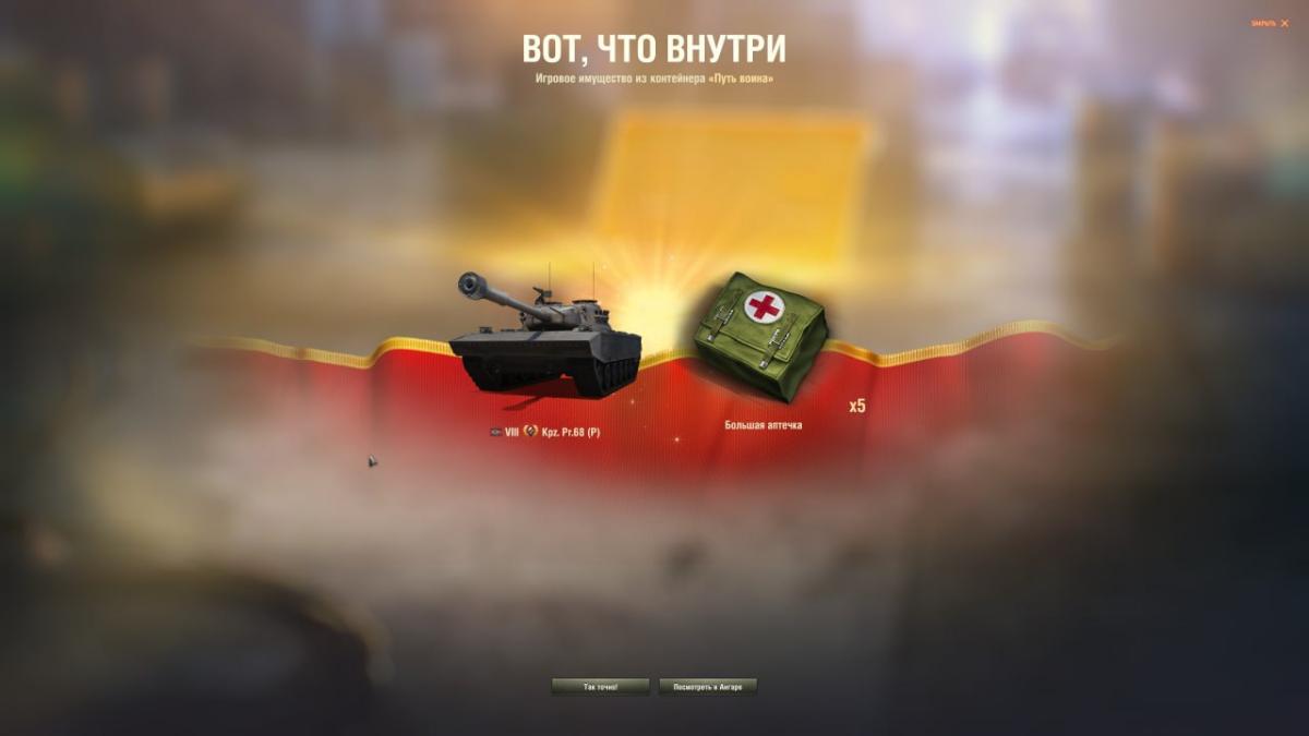 7. Путь воина таки отдал свое содержимое. Причем с бесплатной голды, которая упала с дубля Защитника. Ждемс новые коробочки=) и да, сообщения из разряда "танки хлам", на этих играть не возможно, ответ дам сразу: играйте на чем хотите, выбивать или нет - дело тоже добровольное