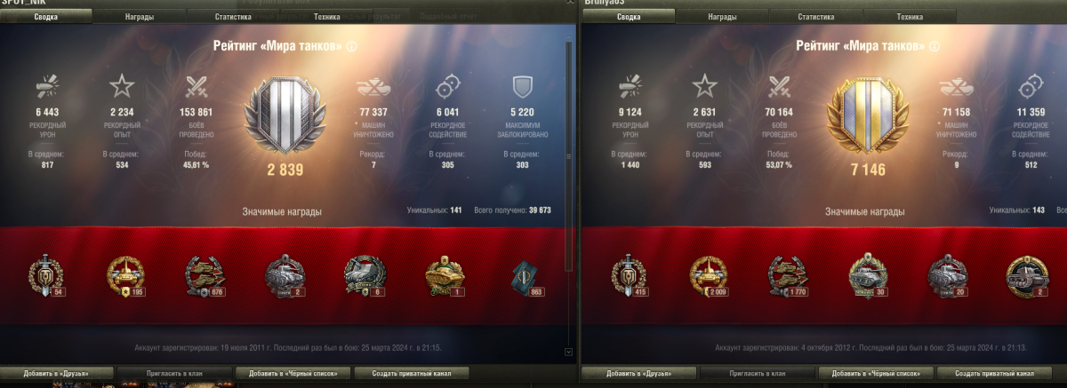 клянусь-через 30-40 секунд удалю аккаунт и брошу играть насовсем после того, как донаты все Леста мне вернет!...а то норм получается-платишь, платишь-за прем-аккаунт, за премтанки и т.д., а потом тебе говорят-иди отсюда!...насчет заговора говоришь? ну смари-с 11 марта играю каждый день(на другом аккаунте-там чат забанили до 25) примерно по 10-12 игр каждый вечер...результат один и тот же (смари скрин)...уверен, и никто меня не переубедит(просто другого объяснения у меня нет), что вместе с баном чата Леста вешает на аккаунт еще и что-то, может типа угнетение какое то, но меня все время кидает к таким же ракам...1, максимум 2 раза за вечер выигрываю...и все как по классике:снаряды в землю, сплошное непробитие и т.д....нет, это конечно не заговор, это они так нас наказывают-в чате то я как раз их критиковал, вот они вместе с баном чата и испортили мне игру...100500% -ща бан закончится и все вернется на круги своя-игры пойдут с успехом 50/50, как и раньше...я ведь писал примерно это в техподдержку, с просьбой объясниться...знаешь что ответили? ничего...потому как отвечать нечего...я их не осуждаю, нет-это их игра, они хозяева...пусть делают что хотят, Бог им судья...З.Ы. И да, посмотри на дату моей регистрации в игре...это к тому, что не просто давно играю, а почти с начала появления этой игры...и не надо меня с нее выталкивать...думаю тоже какой-никакой голос имею...большинство нынешней команды разработчиков игру увидели позже меня)))
