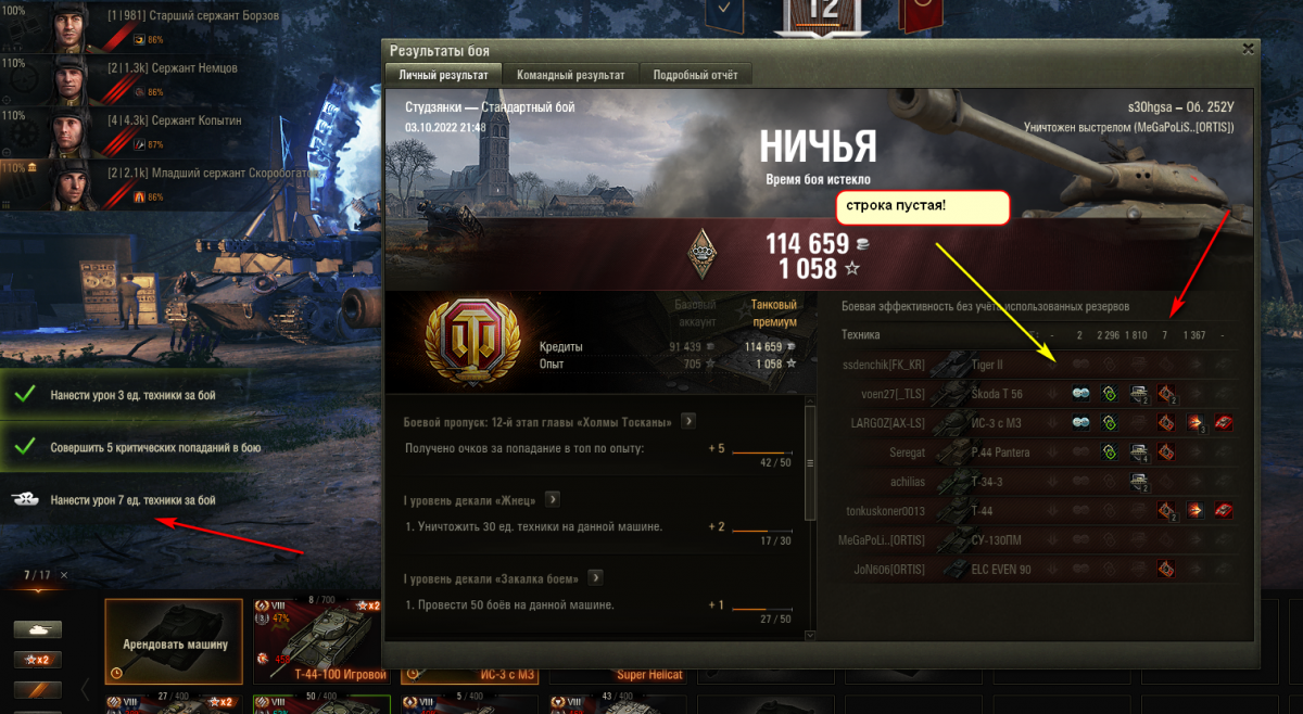Не могу пройти одно из ежедневных заданий - "Нанести урон 7 ед. техники". Сегодня ну вот, вроде нанес! Ан нет-смотрю, вроде указывается 7, а в расшифровке-только 5! Вопрос-почему некоторый урон вроде как отображается, но поле пустое, и непонятно- есть урон или нет? Что повреждено? На скриншотах все видно. Это баг отображения, или как расшифровать пустые строки?