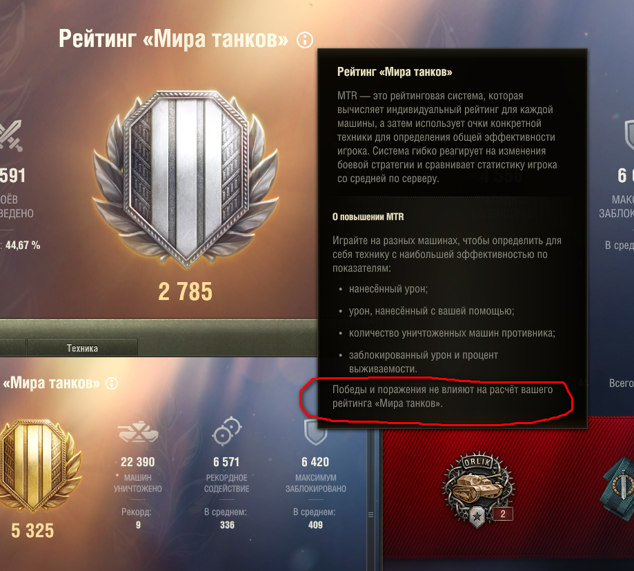 а я до сих пор не понимаю почему этот показатель существует в командной игре!это типа у футболиста один процент побед, а у его команды - другой))))или у баскетболиста? или у другого игрока любой другой команды? ну почему если чел -опытный игрок зашел играть с нами раками, и мы слились -он при чем? его стата побед упала? да! он в этом виноват?нет! или он должен "затащить" один против 8-ых?ну бредятина...кто это придумал вообще?...и про стату последних 100 боев-абсолютно верно! уверен-многие "заработали" свои 50+ проценты боев еще до 2022 года -тогда подставные бои процветали!...вот средний опыт за бой или средний урон за бой -вот это явные показатели скилла! а процент побед-ниочем...и еще-я бы сделал возможность скрыть статистику от других игроков! ну не хочу я чтобы кто то другой читал мою стату!...я вижу, разрабы видят и ладно...а если кто хочет хвастануть-пусть показывает всем!...