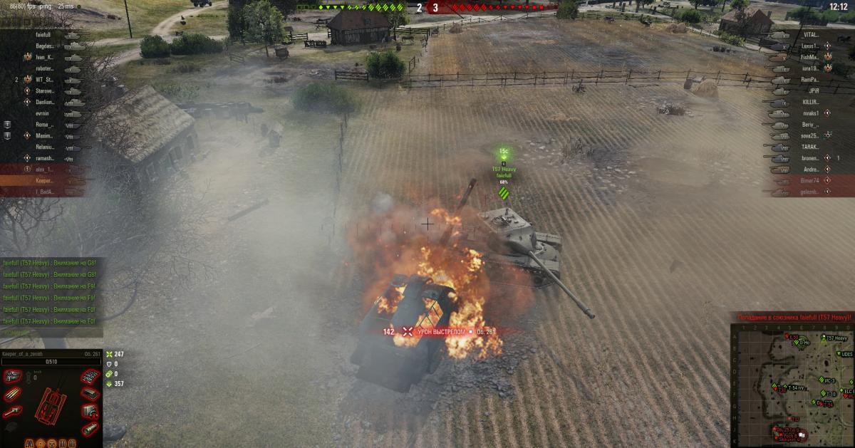 Здравствуйте! Игрок с ником faiefull на T57 Heavy подъехал к моей арте и стал перед стволом. Я этого не видел, так как был в снайперском режиме. После моего выстрела он получил урон, так как свой ствол держал поднятым перед моим и мне получился урон из-за его близости. Потом уехал к второй нашей арте Су 14-2 и поступил также. Она погибла от своего же снаряда, потому что Т57 стоял перед ее стволом. Потом вернулся ко мне и поступил также. Я погиб от своего же снаряда из-за действий этого игрока. Хотя по началу я думал что он выдает мою позицию вражеской арте находясь рядом. Но просмотрев реплей понял что на самом деле он подставлялся под выстрел сознательно и моей арте и второй союзной. Так мы из-за него погибли. Смотрите скриншоты. И еще платили штраф за нанесенный ему урон. Это просто так сойдет с рук этому игроку? Или можно настаивать на его бане за такие действия? Жалоба в игре была подана, но будет ли желаемый результат, бан этого игрока? Чтобы может больше так не делал. И еще вопрос: возможно ли получить компенсацию ремонта и уплаченного штрафа от этого игрока? Спасибо!