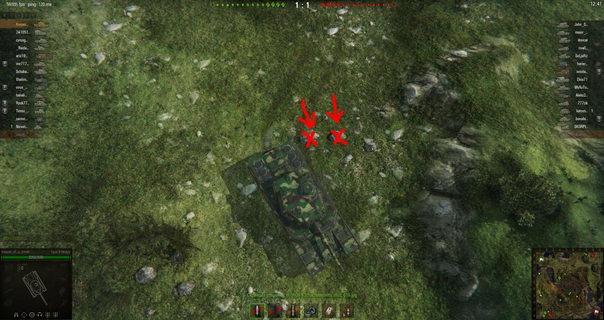 Здравствуйте! В этом месте карты "Топь" (смотрите скрины), не возможно проехать на танке. Словно натыкается на стену, хотя там всего три небольших камня. Пришлось объехать. Было сделано три попытки проехать прямо по этому месту (отмечено крестиками), но безрезультатно. Пришлось объехать. Не подскажите причину? Спасибо!