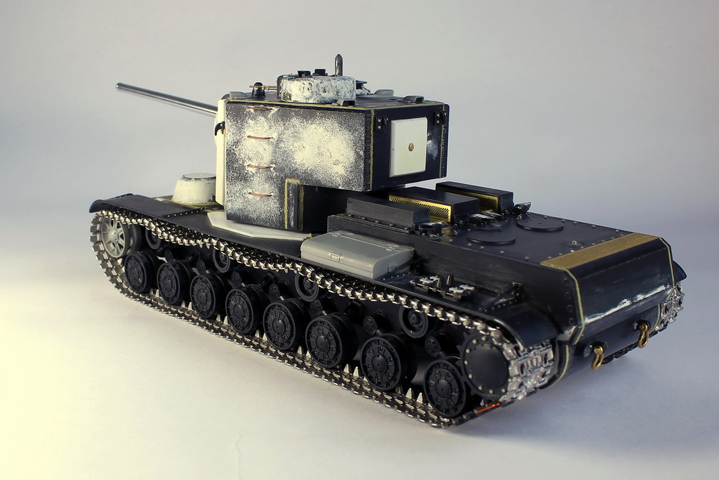 Сборка модели закончена. http://cdn-frm-eu.wargaming.net/wot/ru/uploads/monthly_05_2015/post-404957-0-35660500-1432478083_thumb.jpg http://cdn-frm-eu.wargaming.net/wot/ru/uploads/monthly_05_2015/post-404957-0-22016700-1432478084_thumb.jpg http://cdn-frm-eu.wargaming.net/wot/ru/uploads/monthly_05_2015/post-404957-0-23740400-1432478085_thumb.jpg http://cdn-frm-eu.wargaming.net/wot/ru/uploads/monthly_05_2015/post-404957-0-24335800-1432478086_thumb.jpg http://cdn-frm-eu.wargaming.net/wot/ru/uploads/monthly_05_2015/post-404957-0-17600000-1432478087_thumb.jpg http://cdn-frm-eu.wargaming.net/wot/ru/uploads/monthly_05_2015/post-404957-0-75177000-1432478087_thumb.jpg В итоге по работам: - увеличена толщина лобовой плиты. - имитация сварки и гужонов. - болты и гайки МастерКлуб - имитация литья маски орудия, малых башен и башенки мех вода. - переделаны смотровые щели башенки мехвода, имитирована толщина брони башенки, переделан (утоплен) люк башенки. -ящики ЗИП, бронировки перескопов и вентилятора, башенныый люк и ленивцы от модели КВ-1 Трумпитера. - на башне добавлен кормовой люк для обслуживания орудия. - стволы пулеметов заменены на точеные - изменена геометрия бронировки панорамы и рассверлены перископы. - траки - металл МастерКлуб. - буксировочные петли - RBmodel.