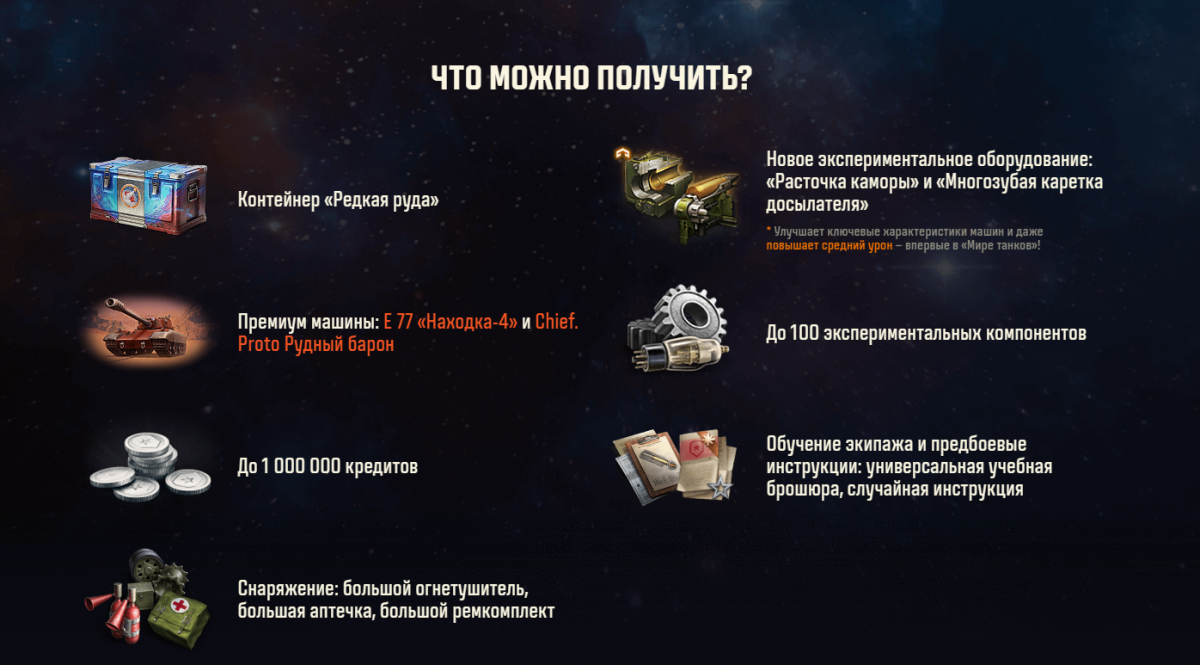 Разработчики есть маленько пожеланий: 1. Исправьте уже синхронизацию тестового и игровых аккаунтов( а то лаг какой то месяца в три наверно). 2. Если вы добавляете новую изучаемую технику, вкидывайте ее сразу чтобы не надо было выкупать и качать. 3. Начисляйте на добавленную технику экипажи со среднестатистическим количеством навыков. 4. Технику 11-ых уровней хотелось бы также пощупать на тесте, неплохо было бы ее видеть по 2-ому пункту. 5. И да не устану писать, сделайте выбор ангара самим игроком в настройках( в кораблях же вы смогли), почему тут не сделать? По хорошему все выше написанное наверно облегчит вашу задачу, т.к. не надо выдавать такое количество голды, опыта и всего остального. В идеале даете технику 8-11 уровней и все, ну и ту что нужна для теста изменений по событиям. И про события)))) Ради интереса я купил на тест 160 коробок итог 43 уникальных и 3 танка из всех этих контейнеров( как то маловато из 203-ех коробок, даже в сравнении с НГ). Из 3-ех танков 2 у меня уже есть, за них пришла компенсация %50 наверно..... 7500 за 9-ку и 5500 за 8-ку.... Как то маловато? Надеюсь что вы исправите это. Как и количество разнообразных (но бесполезных) резервов, лучше замените резервы на Компоненты, а то их как испытывается деффицит. Еще сделайте что-нибудь с ежедневными(это и про ЦЕПЬ ПОБЕД) и недельными наградами, добавьте лучше боны, компоненты, чертежи, оборудку( больше и чаще). Исправьте то что ваши награды в Цепи побед(ежедневной между прочим) идут на уменьшение и нет (по факту) поощрения для тех кто не бросает игру