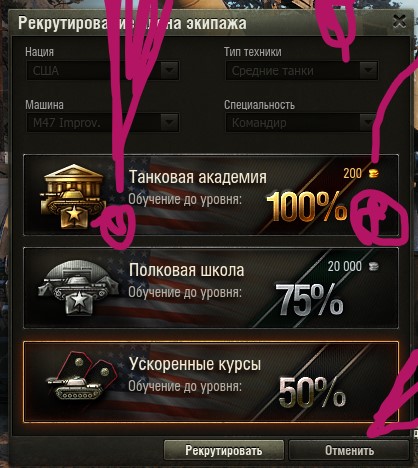 Задача: набрать экипаж, посадить их на прем и потом высадить в нужный танк, не переобучая. Танк исследован, но не куплен. Как это сделать? Если не ошибаюсь, раньше в казарме была кнопка "рекрутировать", которая позволяла набрать экипаж, не приобретая танк. Сейчас её убрали? Модов нет. Куда кнопку "рекрутировать" перенесли?