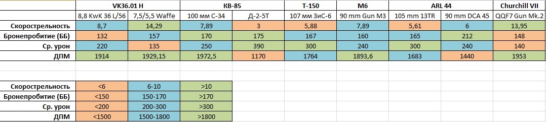 36.01 Н хорош тем, что и в стоке может затащить - ему по наследству от 30.01 Н досталось коническое орудие 7,5-5,5, которое и против 8 лвл кое на что способно. Точность, скорострельность, 221 мм голдо-пробития - можно КВ-4 в лоб бить (но не нужно, конечно). Да, альфа всего 135. Но не забываем про криты, которые коник вешает весьма успешно. Гусление - вообще без вопросов, можно любого ТТ держать сколь угодно долго. По сравнению с 30.01 Н, появилась скорость (как мне её не хватало!), кое-какое бронирование (ни разу не решающее, но всё же не 50 мм по кругу) и чуть лучший обзор (который лично я разгоняю трубой - штурмовка на 36.01 развлечение то ещё). Во втором бою сделал Мастера - на пару с Блек Принцем вытащили бой. Свезло с противниками, канеш - БП с 30 ХП успешно держал 100% КВ-3, пока я ему засаживал в борт, а их Т-67 в это время где-то катался, чтобы чуть позже бесславно сдохнуть от коника. http://cdn-frm-eu.wargaming.net/wot/ru/uploads/monthly_06_2015/post-41628769-0-44726200-1434853955_thumb.jpghttp://cdn-frm-eu.wargaming.net/wot/ru/uploads/monthly_06_2015/post-41628769-0-53538000-1434853956_thumb.jpghttp://cdn-frm-eu.wargaming.net/wot/ru/uploads/monthly_06_2015/post-41628769-0-87333400-1434853957_thumb.jpg Скорострельность апать некуда - как ни странно, у 8,8 и у 7,5/5,5 одни из самых высоких ДПМ среди ТТ-6. А вот бронепробитие у 8,8 самое низкое не только среди ТТ-6, но и среди большей части СТ-6 и даже некоторых ЛТ-6 (!!!). Слабал табличку сравнения орудий ТТ-6: http://cdn-frm-eu.wargaming.net/wot/ru/uploads/monthly_06_2015/post-41628769-0-80568500-1434879506_thumb.jpg Получается, что у КВ-85 100-мм ствол самый лучший - 2 показателя хороших, 2 отличных. Хороший ствол у М6 - 3 хороших показателя, 1 отличный. У Т-150 и АРЛ 44 с 105-мм чуть низкая скорострельность компенсируется хорошей альфой. У АРЛ 44 90-мм орудие имеет очень скромный ДПМ, но сверх-высокое бронепробитие. И остаются аутсайдеры - 36.01 Н и Черчилль VII. ДПМ формально - очень высокий. 7,5/5,5 и QQF7 во многом сходны, но бронепробитие в 148 превращает ствол Черча в колотушку, которая реализовать свой ДПМ может только против слабо бронированных целей. Однако, 157 мм коника на 6 лвл уже тоже далеко не айс - серединка, ближе к низу. А 132 мм у 8,8 - абсолютный антирекорд, делающий этот ствол практически неюзабельным. Зачем тяжёлому танку орудие, из которого он не способен пробивать 3/4 вероятных противников? Это все ТТ-7 и выше, все СТ-8; кроме того, низкая вероятность пробития ТТ-6, СТ-7. Остаются ТТ-5 и ниже, СТ-6 и ниже, все ЛТ. Коник - хороший ствол, вопросов нет. Для 5 лвл. На 6 лвл уже не торт. Причина та же - низкое бронепробитие. Иными словами, нам дали орудия с прекрасным ДПМ, реализовать который весьма затруднительно. У 8,8 этот параметр надо повысить хотя бы до уровня 7,5/5,5, пусть за счёт некоторого снижения скорости перезарядки. ЗЫ: Либо льготный уровень боёв. Скрин игры с 8,8 против 8 лвл: http://cdn-frm-eu.wargaming.net/wot/ru/uploads/monthly_06_2015/post-41628769-0-63222700-1434900823_thumb.jpg Стрелял голдой и в борт, и в корму - ИС-6 не пробивается. Зачем 36.01 отправляют с ними в бой? Халявным фрагом? Сделайте тогда кнопку "Подарить фраг", хотя бы время не придётся тратить на заведомо бесполезное занятие.