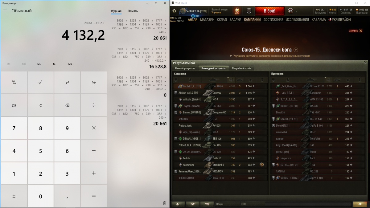 Добрый день форумчане нашей замечательной игры . Случилось проблема в выполнение ЛБЗ . Все условия были выполнены , а выполнение не случилось . Моя команда нанесла 20661 урона , я нанес 4989 урона ( не смотря на то что по мне стрелял свой много уважаемый союзник ) , задача стояла основная " Сумма нанесённого, полученного и заблокированного бронёй урона должна составлять 10 000 и более единиц. " - сделано . Доп условия " Нанести 20% от суммарного урона своей команды. + Победить. " - тоже сделано . тк от 20661 урона 20% = 4132 урона . А награды нет ! Уважаемые разработчики , прошу Вас обосновать данный фактор ( мб я что-то не понимаю https://forum-mt-prod.lesta.ru/emoticons/Smile_confused.gif https://forum-mt-prod.lesta.ru/emoticons/Smile_blinky.gifлибо если задача была сделана - начислить мне награду за доп.условия 350.000 кредитов и бланк приказа !