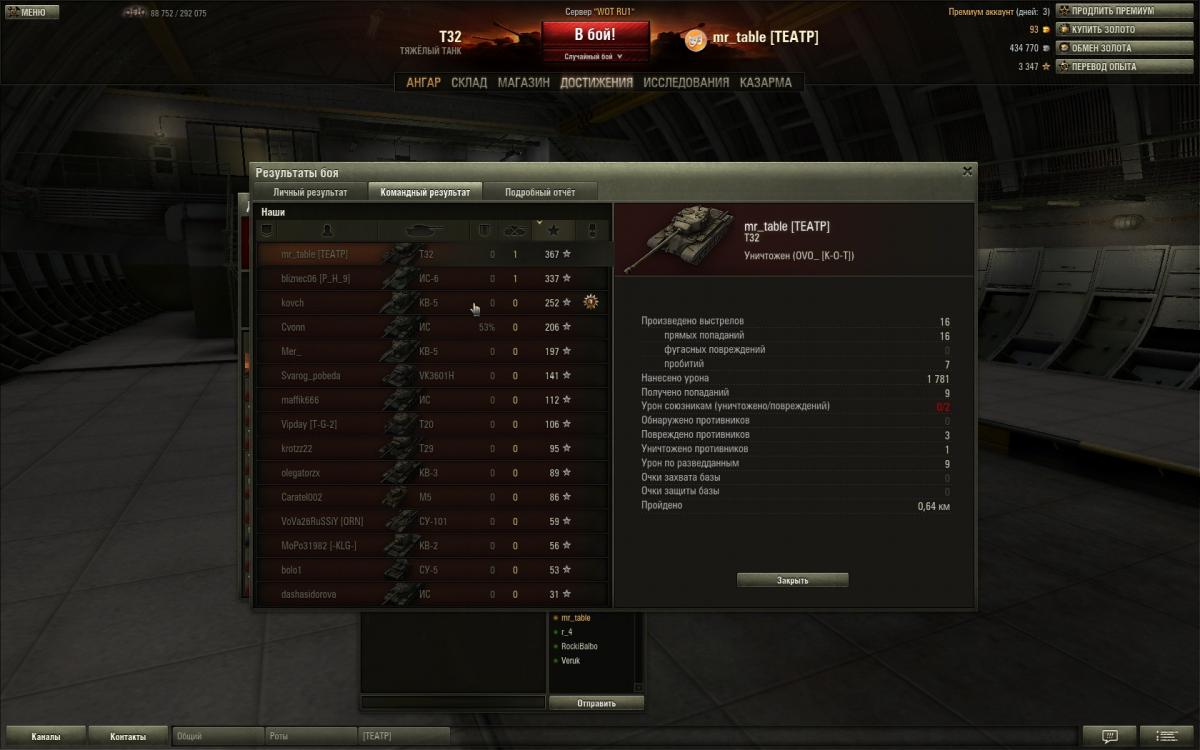 КВ-5: 10/10, 776 урон, 252 опыт Я: 16/16, 1781 урон, 367 опыт Пусть считается по пробитиям, смотрим потенциальный урон, 7 пробитий и у него, и у меня. Средний урон у T32 320 (2240), у КВ-5 300 (2100), потенциальный урон у меня больше. Все пункты награды выполнены, я не понимаю, почему медаль присуждена ему.