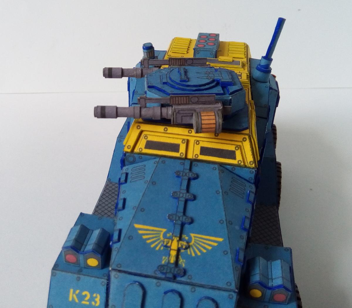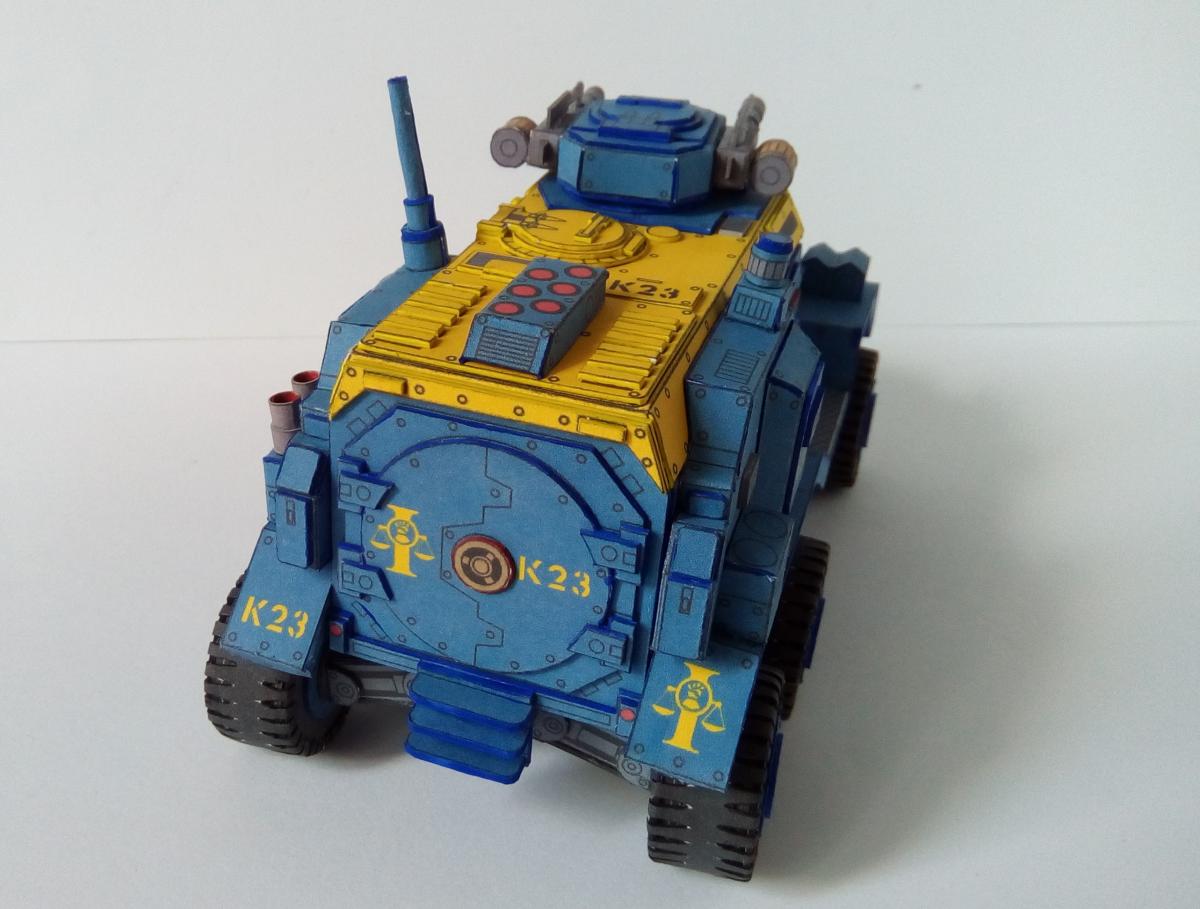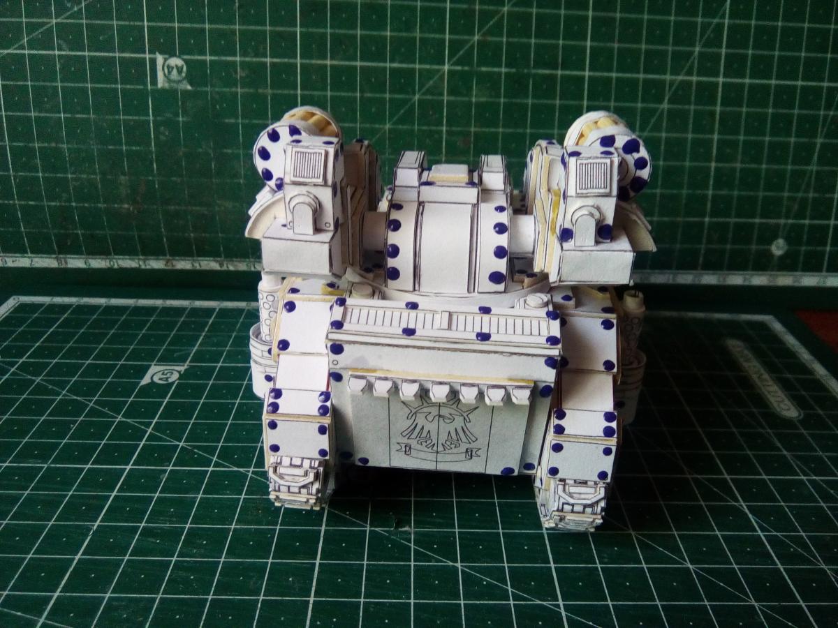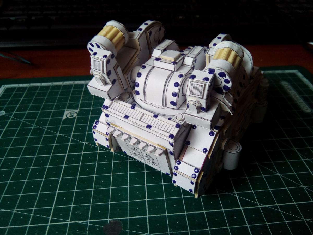 Всех приветствую! http://cdn-frm-eu.wargaming.net/wot/ru/uploads/monthly_08_2020/post-4191913-0-39199000-1597130659_thumb.jpg Около полутора лет назад Elle Patoroch выпустил очередную авторскую фантазию на тему гибридизации реальной техники с техникой вселенной Warhammer 40k. На основе работ западных коллег, уже успевших собрать и окрасить данную модель, я решил попробовать и сам. Процесс этот во времени растянулся по не зависящим от меня причинам. Собирал все без особых отступлений от развертки, добавил чуточку проволочных элементов из припоя и заклепки. Заклёпок 2 вида: из акрилового контура на корпусе и из шариков припоя BGA 0.76mm на ходовой части. Заклепки из шариков ставил в порядке эксперимента. Нервов проклепать в такой же технике корпус у меня увы не хватило. Вышло слишком трудоёмко. Покраска выполнена при помощи аэрографа, красок от Ammo mig и vallejo. Попробовал сделать некоторое подобие цветовой модуляции. Вышло не торт, так как это первый полноценный и сколь-нибудь осознанный опыт в данной технике. Фото результатов: Spoiler Подробнее о сборке в формате видео: Spoiler