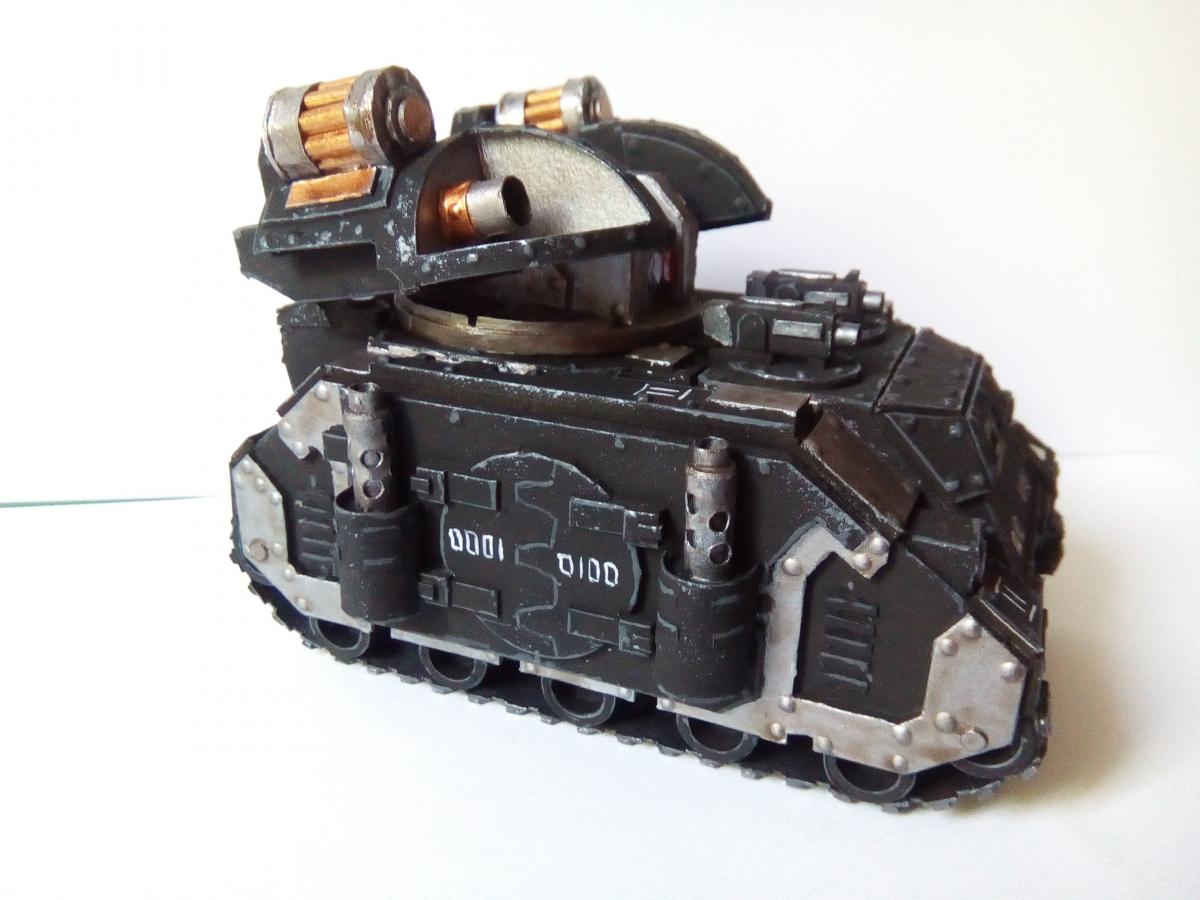 Всех приветствую! http://cdn-frm-eu.wargaming.net/wot/ru/uploads/monthly_05_2018/post-4191913-0-22699500-1526455246_thumb.jpg Не так давно завершил очередную свою модель - ракетную установку космодесанта Deimos Whirlwind Scorpius для своего товарища и его армии железных рук. Собрана и окрашена модель была за 2 недели без особых изысков. Сама машинка является модификацией стандартного шасси "Носорог" с установкой ракетной системы вместо люка на крыше. Собрана в варианте войн ереси с ракетницей револьверного типа. Из доработок пожалуй только чуть более копийные катки и слегка усложненные барабаны ракетниц. Фото: Немного фото в процессе сборки: