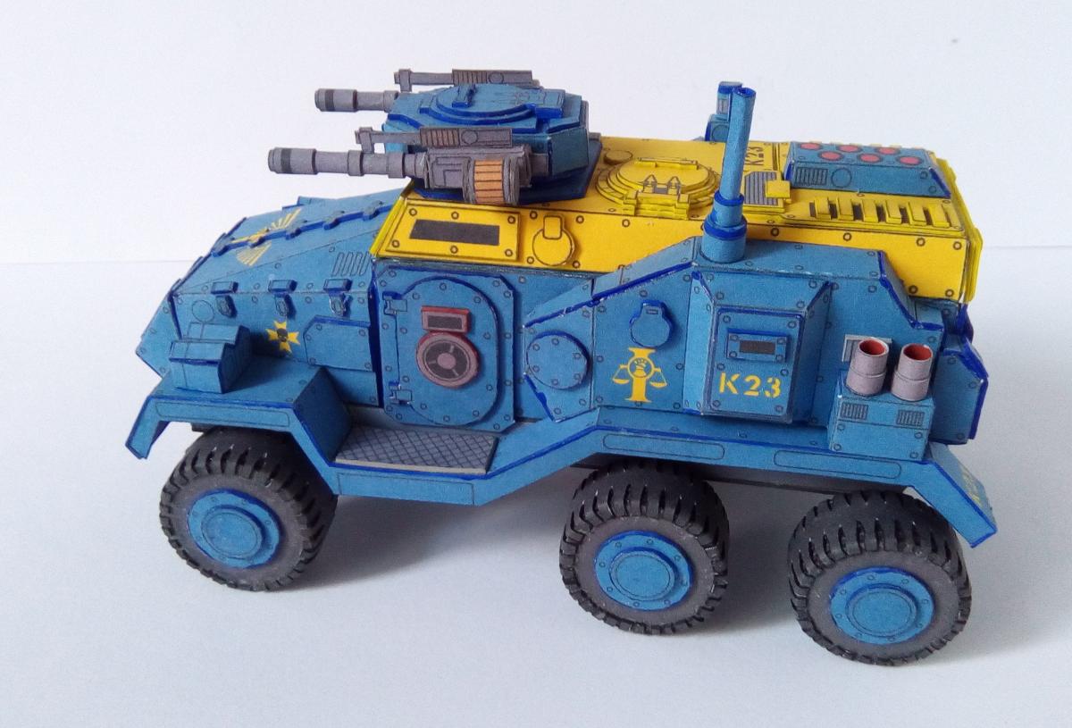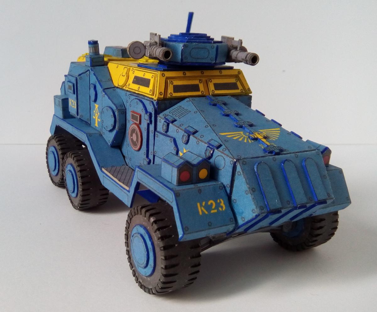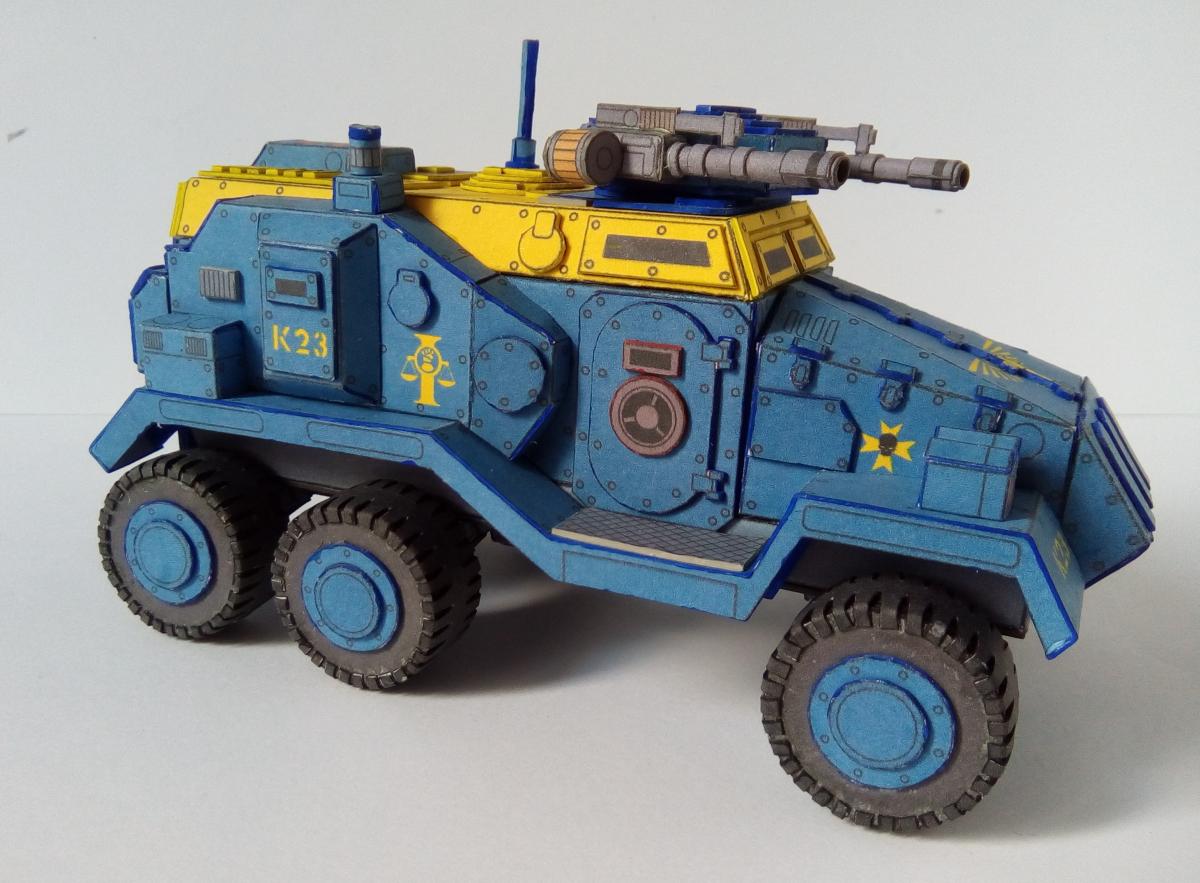 Все приветствую! http://cdn-frm-eu.wargaming.net/wot/ru/uploads/monthly_08_2018/post-4191913-0-33545200-1534246591_thumb.jpg Не так давно завершил сборку относительно простого но в то же время интересного бронеавтомобиля из вселенной warhammer 40k. Данная машина является авторской фантазией Elle Patoroch на тему давно вышедшего в пластике Taurox Prime. Из особенностей можно выделить: 1) Наличие колес, что для данной вселенной редкость. 2)Довольно неплохая проработка днища, чем даже пластик от GW и FW обычно не блещет. Фото: Spoiler Видео по процессу сборки: Spoiler