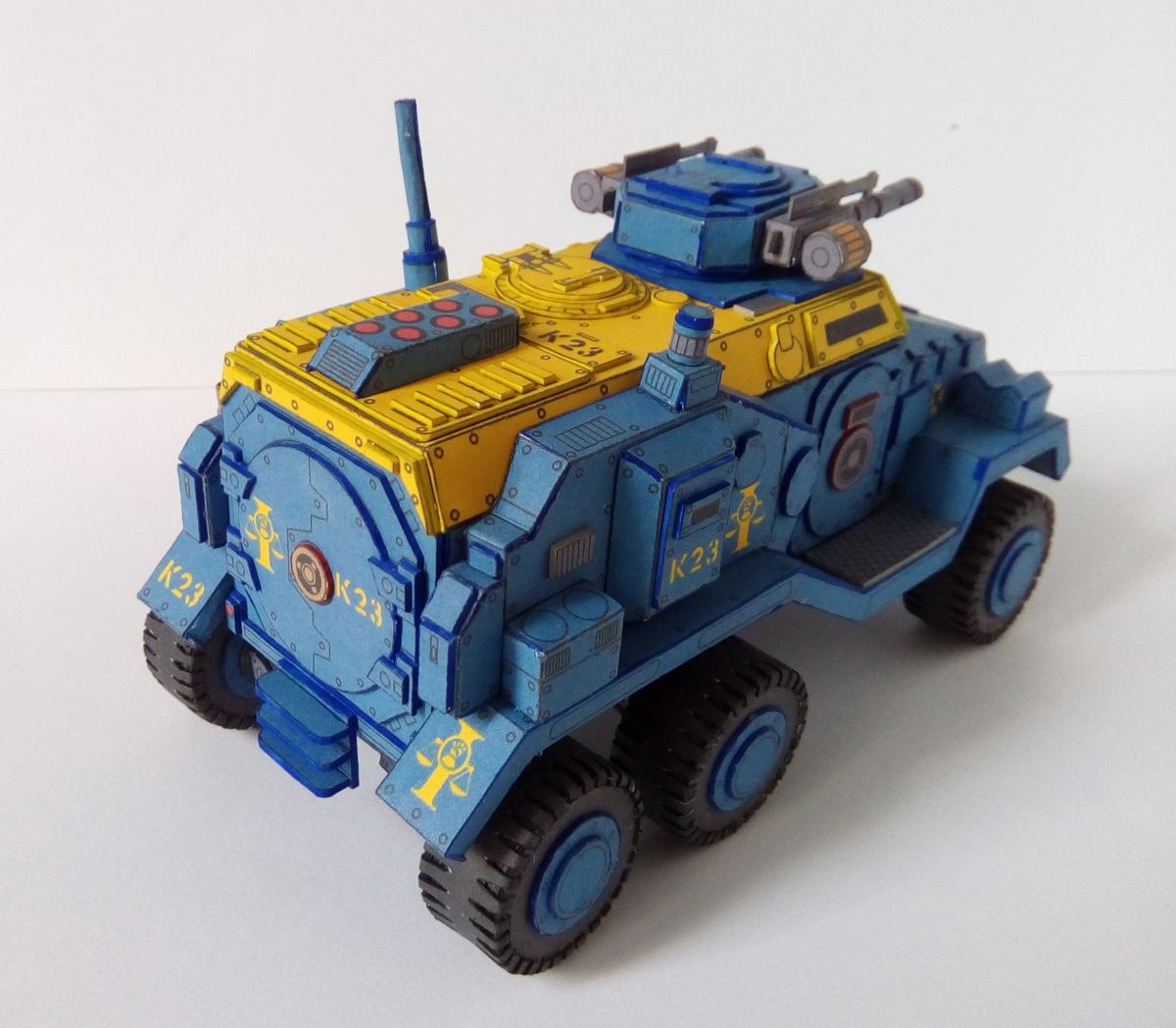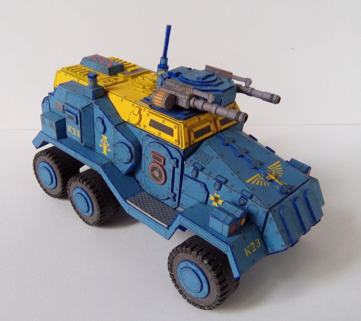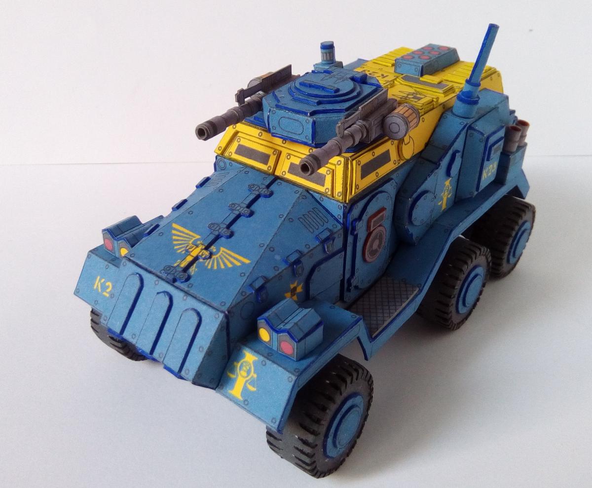 Все приветствую! http://cdn-frm-eu.wargaming.net/wot/ru/uploads/monthly_08_2018/post-4191913-0-33545200-1534246591_thumb.jpg Не так давно завершил сборку относительно простого но в то же время интересного бронеавтомобиля из вселенной warhammer 40k. Данная машина является авторской фантазией Elle Patoroch на тему давно вышедшего в пластике Taurox Prime. Из особенностей можно выделить: 1) Наличие колес, что для данной вселенной редкость. 2)Довольно неплохая проработка днища, чем даже пластик от GW и FW обычно не блещет. Фото: Spoiler Видео по процессу сборки: Spoiler