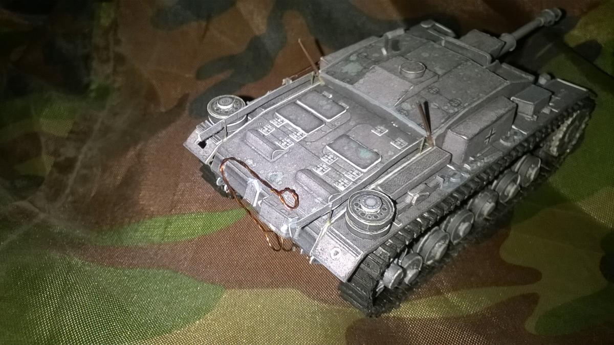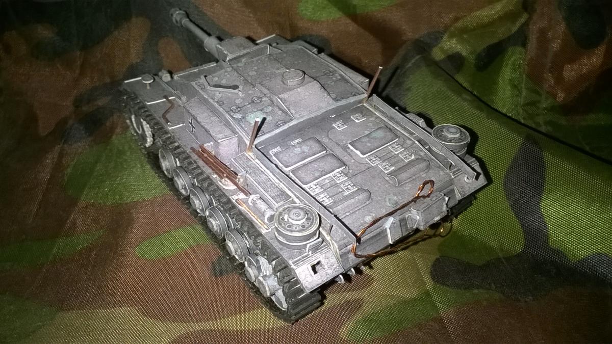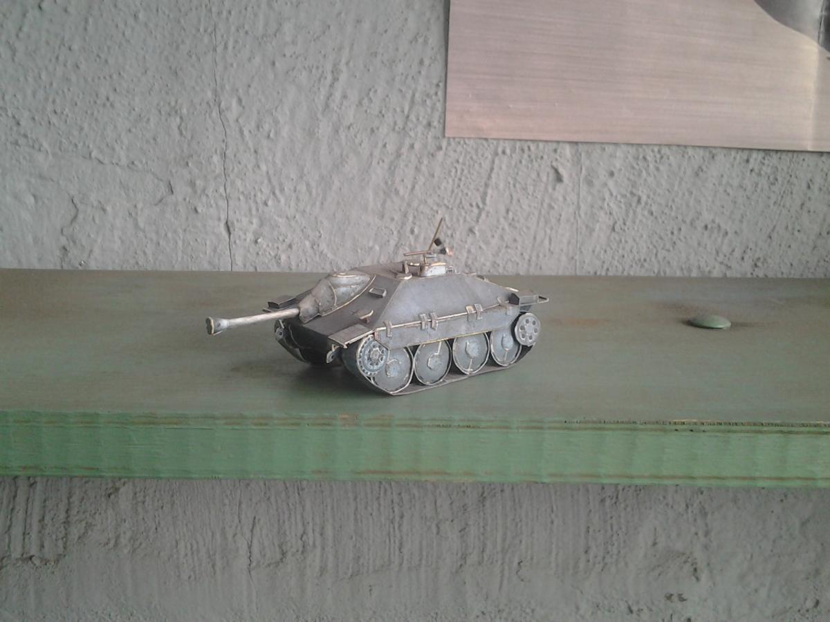 пт собрана из бумаги и картона + от себя декора из проволки... сложность ходовой сложная... одна гусянка из 150 деталей траки и грунтозацепы....