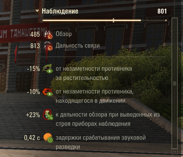Не совсем правильная формулировка. Я бегаю со скоростью 15 кмч, но выпил энергетика и теперь бегаю со скоростью 18 кмч. Если противник бегает со скоростью 15 кмч или 20 кмч это не влияет на то что я бегаю 18 кмч. Так и здесь. Танк, обвешаный оборудованием на демаскировку, имеет общий фиксированный показатель демаскировки, который не меняется, а лишь меняется расстояние обнаружение от характеристик вражеского танка, но характеристики моего танка остаются неизменными.