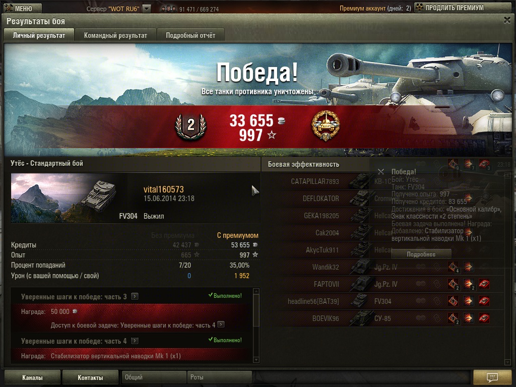 Провёл,так сказать,исследование.Ничего не понял...Не показатель,конечно,три боя.Фото в порядке очереди: http://cdn-frm-eu.wargaming.net/wot/ru/uploads/monthly_06_2014/post-4260204-0-49080400-1402853336_thumb.jpg http://cdn-frm-eu.wargaming.net/wot/ru/uploads/monthly_06_2014/post-4260204-0-74360600-1402853349_thumb.jpg http://cdn-frm-eu.wargaming.net/wot/ru/uploads/monthly_06_2014/post-4260204-0-45389000-1402853362_thumb.jpg http://cdn-frm-eu.wargaming.net/wot/ru/uploads/monthly_06_2014/post-4260204-0-45207700-1402853375_thumb.jpg http://cdn-frm-eu.wargaming.net/wot/ru/uploads/monthly_06_2014/post-4260204-0-50333100-1402853392_thumb.jpg http://cdn-frm-eu.wargaming.net/wot/ru/uploads/monthly_06_2014/post-4260204-0-06245100-1402853405_thumb.jpg http://cdn-frm-eu.wargaming.net/wot/ru/uploads/monthly_06_2014/post-4260204-0-89396500-1402853414_thumb.jpg