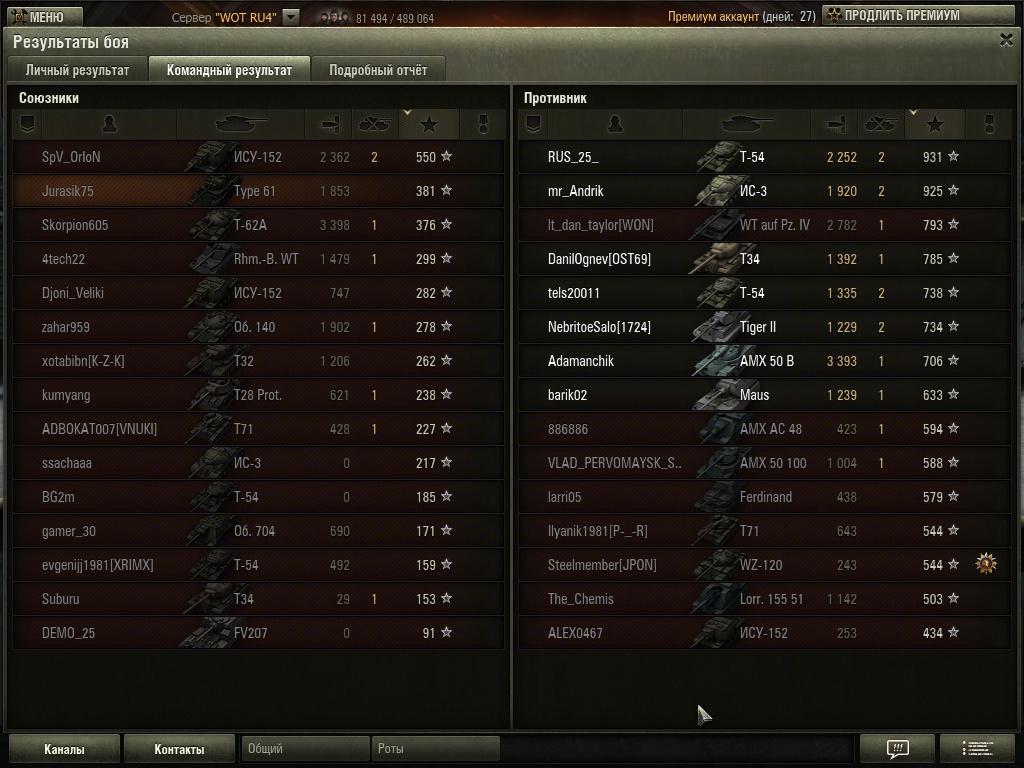 откатал я 150к на нем, ни копейки не вложил свободки, танк унылый, все выше уже сказали, топ двиг не стоит открывать. думаю на этом пока закончу с китайцами, ибо 90к опыта катать на 9лвл с этой пушкой будет невыносимо. Продал, купил т44, буду лучше 430 качать) ах да, мастера тут взял за несколько боев до продажи, хз как и по какой причине http://cdn-frm-eu.wargaming.net/wot/ru/uploads/monthly_06_2018/post-4283061-0-59050400-1529146748_thumb.jpg http://cdn-frm-eu.wargaming.net/wot/ru/uploads/monthly_06_2018/post-4283061-0-41608900-1529146767_thumb.jpg к слову- мастер на каерне сегодня же http://cdn-frm-eu.wargaming.net/wot/ru/uploads/monthly_06_2018/post-4283061-0-00791400-1529146852_thumb.jpg http://cdn-frm-eu.wargaming.net/wot/ru/uploads/monthly_06_2018/post-4283061-0-86692800-1529146878_thumb.jpg