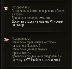 Добрый день! Прошу разъяснить ситуацию. На 5-ом уровне события "Снова в строй" дают скидку на исследование и покупку танка из предложенного списка. Я выбрал польский ТТ 45TP. При чём было написано, что на исследование скидка - 100%, а не 48. В итоге мне начислена скидка 50% на покупку, но нет никакой скидки на исследование. 43000 опыта - полная цена исследования танка. Вопрос: почему? Тут можно как-то связаться с разработчиками или по таким вопросам отдельно им писать? И куда? Спасибо
