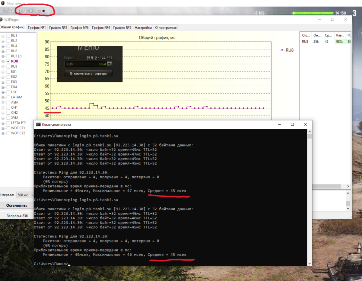 В бою пинг 150+ с лагами, вотпингер и командная строка во время боя стабильные ~50, в меню 50. В чем проблема?