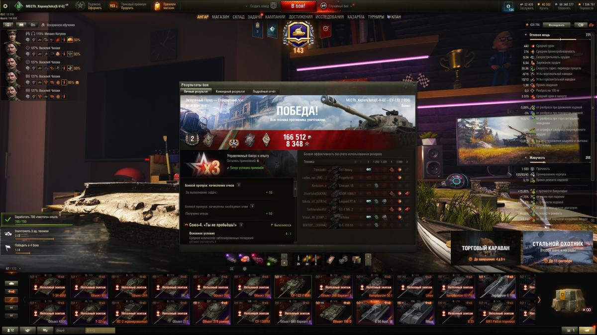 Купил значит этот танк в боновом магазине и остался очень доволен. Танк доставил кучу положительных эмоций, Мне кажется, обязательно качать перк "Чистота и порядок". Даже с установленной КУВ Т3, танк часто горел, но этот перк свел возгорание танка практически на нет. По поводу оборудования, мой выбор пал на СПМ Т3 + КУВ Т3 + Боновая вентиляция (мне было комфортно играть именно в таком комплектации) Танк реально бодрый и сильный и способен на многое, покупайте скорее пока танк не вернули обратно к "заводским" настройкам.
