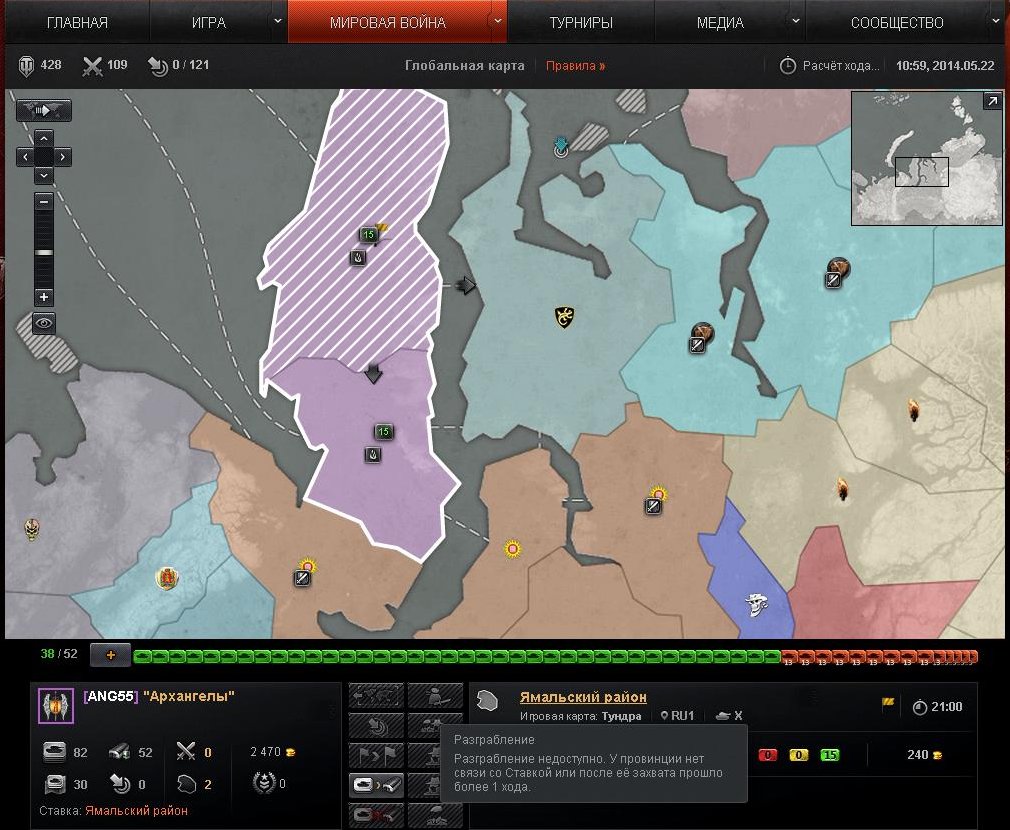 Уважаемые разработчики почему на основной ГК в данный момент мы не можем разграбить принадлежащие нам провинции, хотя все вот эти условия http://worldoftanks.ru/ru/content/clanwars_guide/special_operations/ransack/ для этого были выполнены??? И точно известно что уже более 5 дней эти провинции никто не грабил???