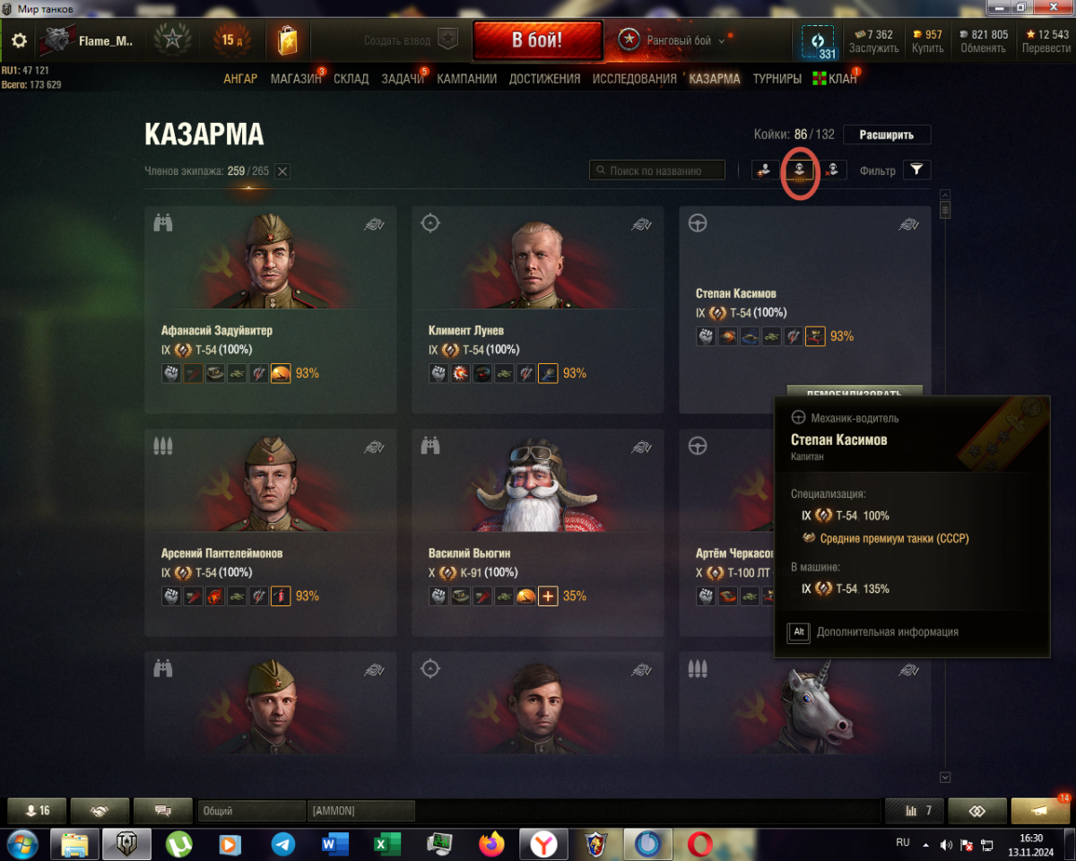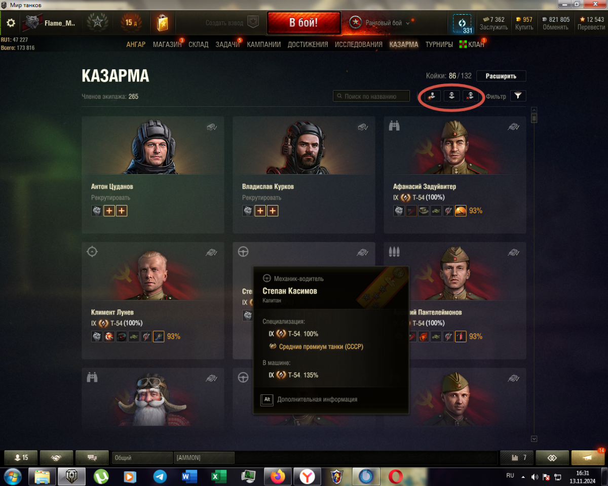 Занимают ли места в казарме члены экипажа которые находятся в данный момент на технике? Как настроить фильтр отображения членов экипажа по специализации/нации/нахождению в машине или в ангаре https://forum-mt-prod.lesta.ru/monthly_11_2024/post-4473984-0-80166500-1731504711_thumb.pnghttps://forum-mt-prod.lesta.ru/monthly_11_2024/post-4473984-0-63778900-1731504840_thumb.png