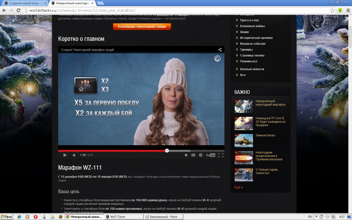 посомтрел видюшку с красивой девушкой, обещала по 19 января х5 за 1 победу, на деле сколько не играю вижу в ангаре х2, прилагаю скрин с браузера.и да вот еще, х2 за каждый бой...тож не видать....