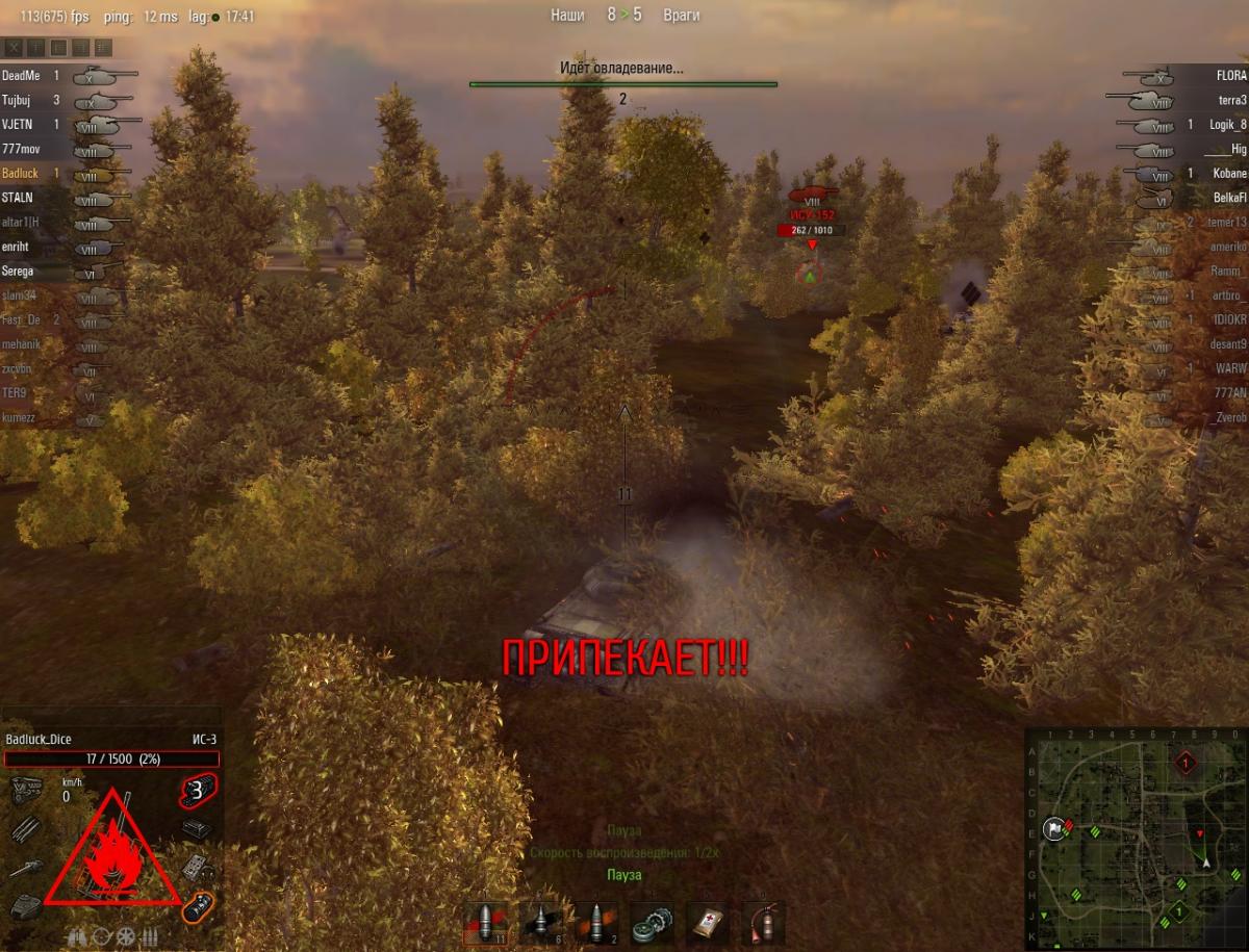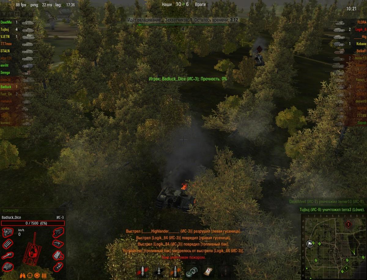 Здравствуйте. Только что в бою приключилась немного странная, на мой взгляд, ситуация: после того, как мой танк был подожжён вражеским выстрелом (уже имея к тому моменту малый запас прочности), я применил огнетушитель, однако танк всё равно догорел - при том, что и огнетушитель тоже потратился. Получается, что экипаж с чистой совестью дотушил обугленные обломки и пошёл курить? Не то, чтобы так жалко было огнетушителя или даже танка, но просто интересно - это баг или так и задумано, что после применения огнетушителя танк ещё получает, скажем, один тик дамага от пожара? Первые два скрина - из реплеера, на них виден процесс использования огнетушителя в последние мгновения жизни танка, третий - то, что я увидел в бою после смерти: потраченный огнетушитель и догоревший танк. http://cdn-frm-eu.wargaming.net/wot/ru/uploads/monthly_01_2013/post-4540707-0-15465200-1357653975_thumb.jpg http://cdn-frm-eu.wargaming.net/wot/ru/uploads/monthly_01_2013/post-4540707-0-07412100-1357654007_thumb.jpg http://cdn-frm-eu.wargaming.net/wot/ru/uploads/monthly_01_2013/post-4540707-0-08115400-1357654038_thumb.jpg