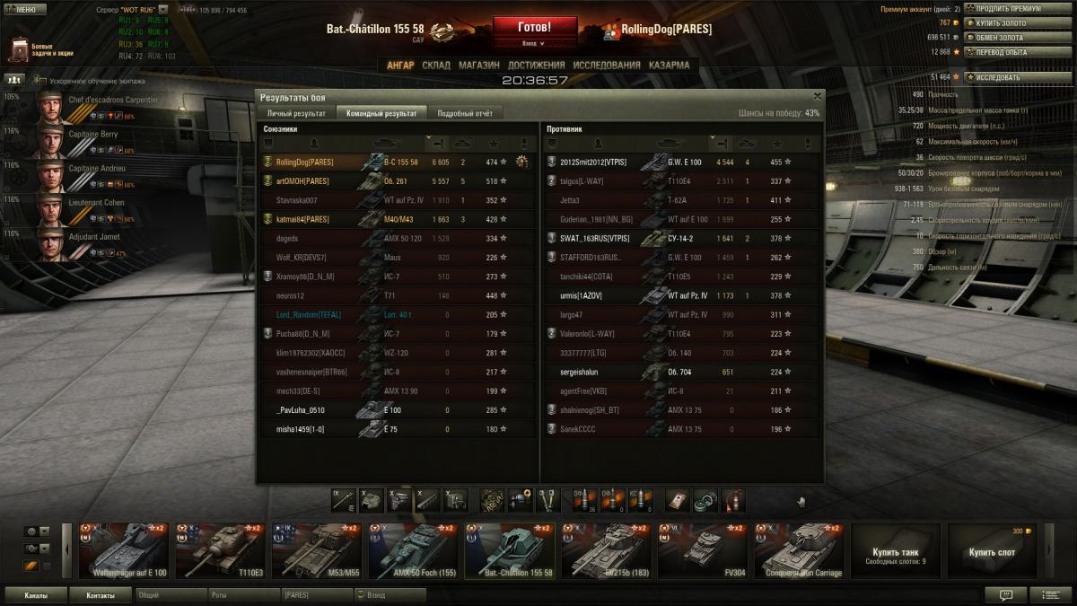 Стата на бате всё падает да падает, уже скоро 50% будет. К таким ракам я попадал постоянно лишь на Об263. Этот бой вообще эпик. Кроме нашего взвода лишь 5 человек в команде смогли найти, какой кнопкой стрелять и лишь трое из них знали, что стрелять за бой можно больше, чем 1 раз. В конце были обозваны нубовзводом, дескать брелка взяли.