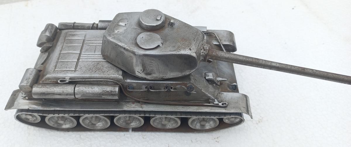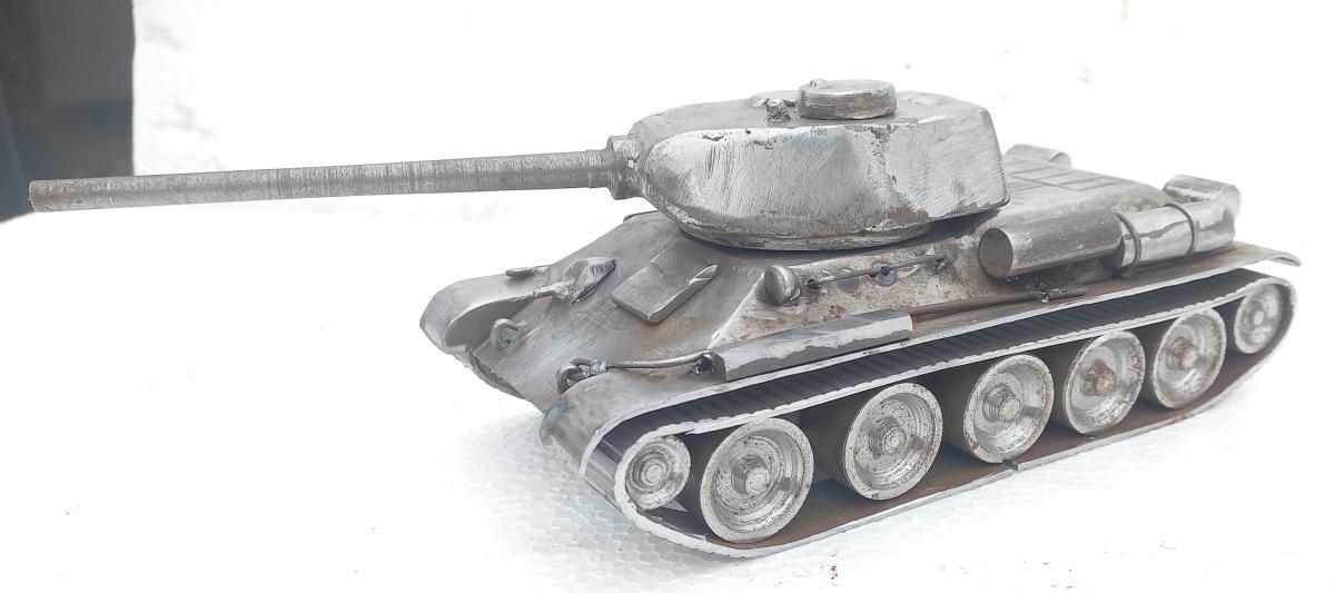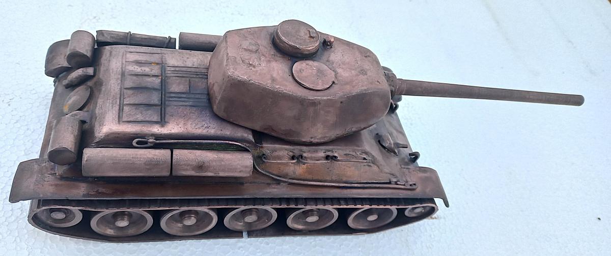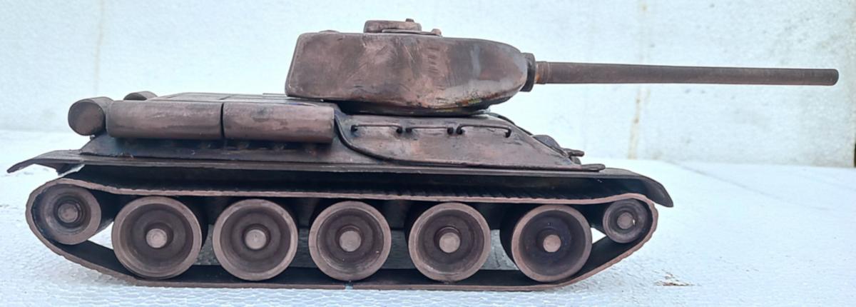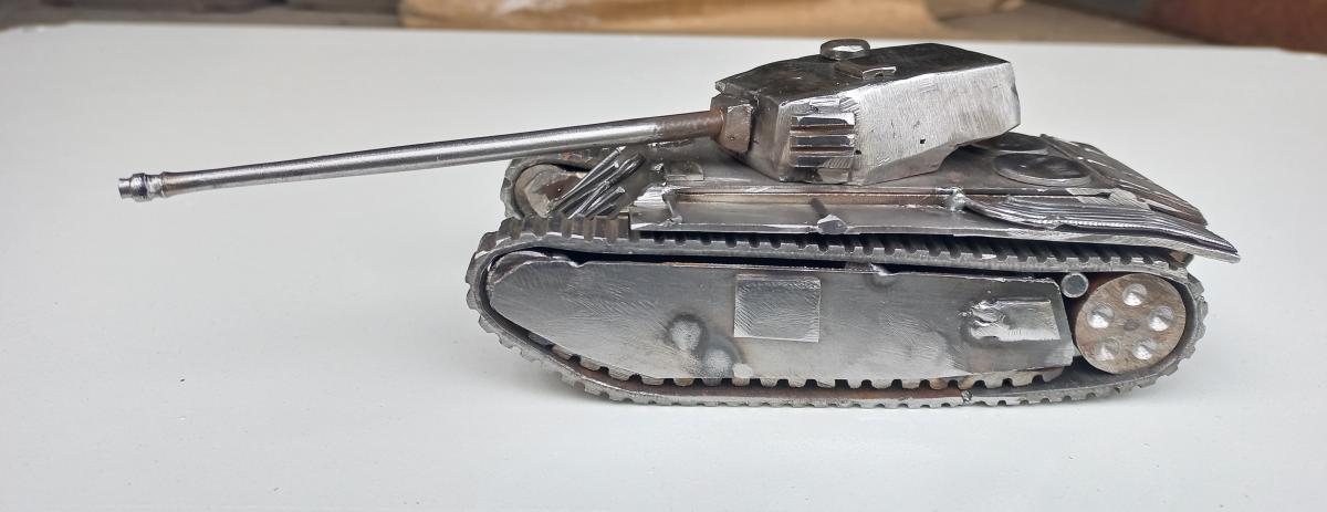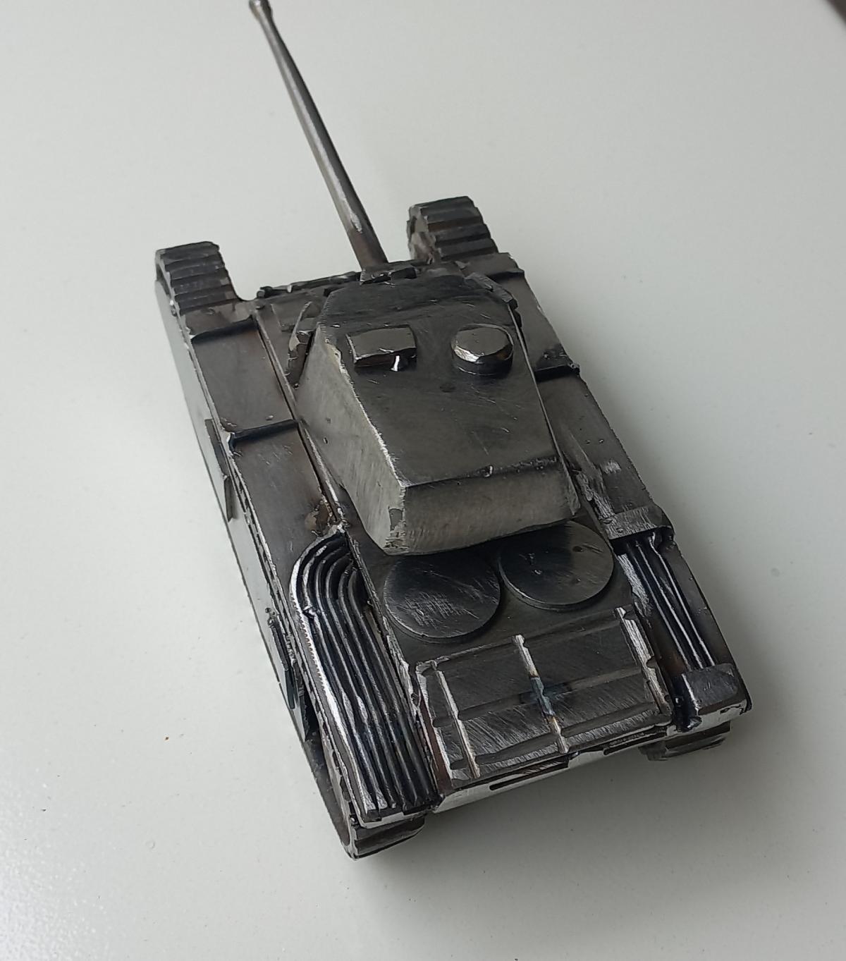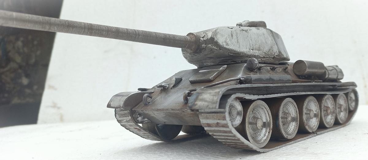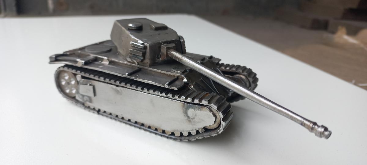 моделька изготовлена из листового металла 2 мм. пушку и катки точил на токарном последние 2 фото таким он получился после травли электрохимическим способом