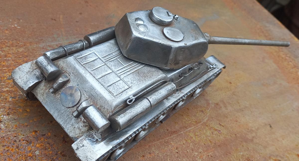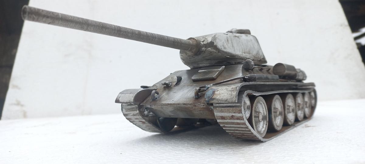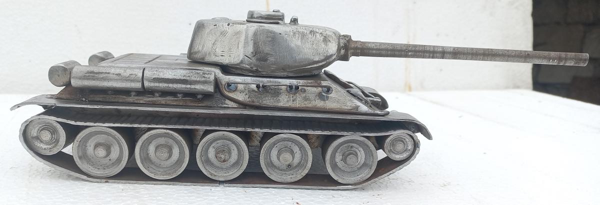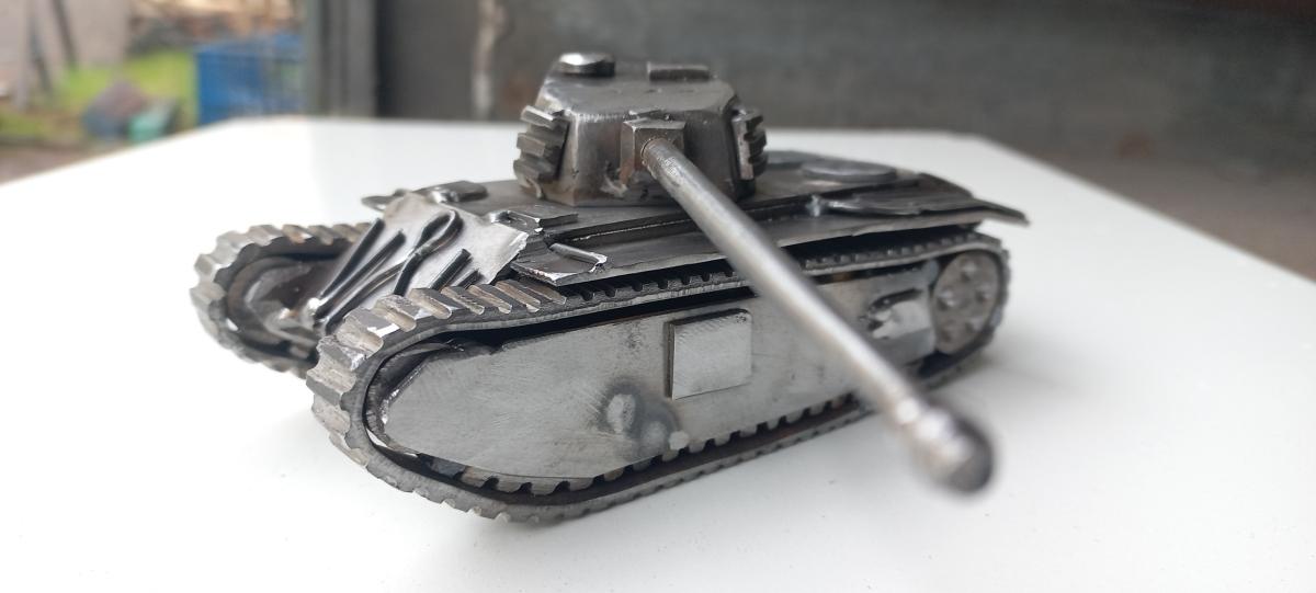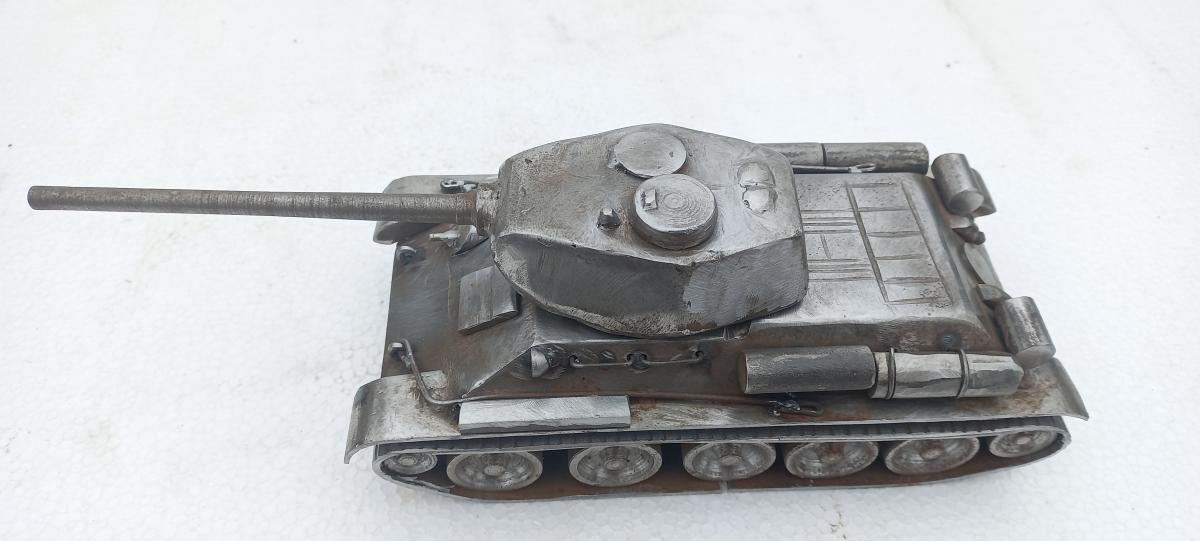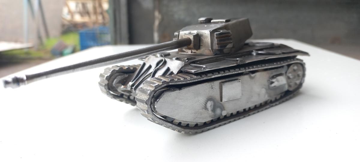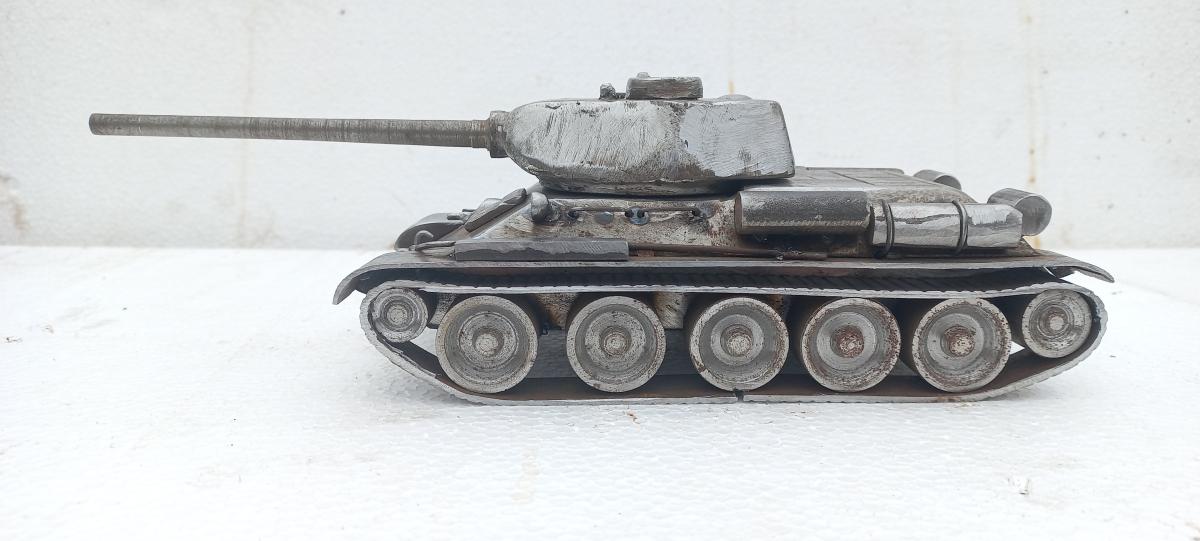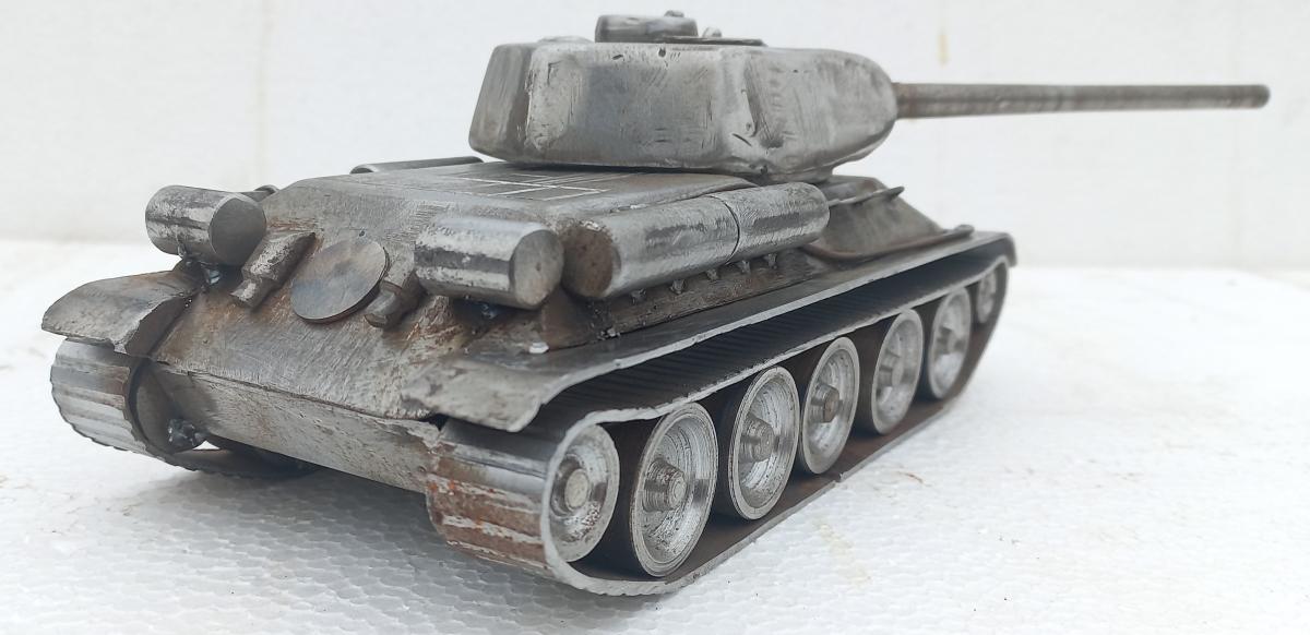 моделька изготовлена из листового металла 2 мм. пушку и катки точил на токарном последние 2 фото таким он получился после травли электрохимическим способом